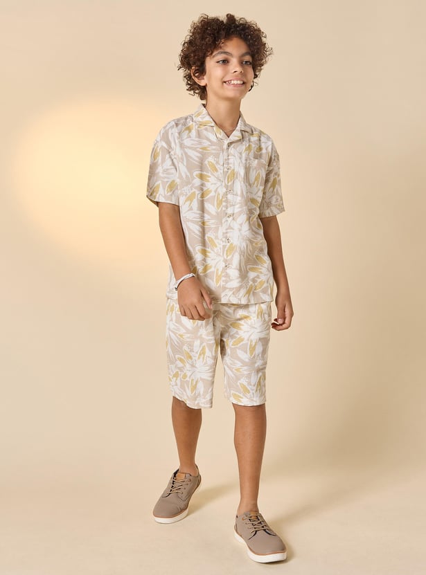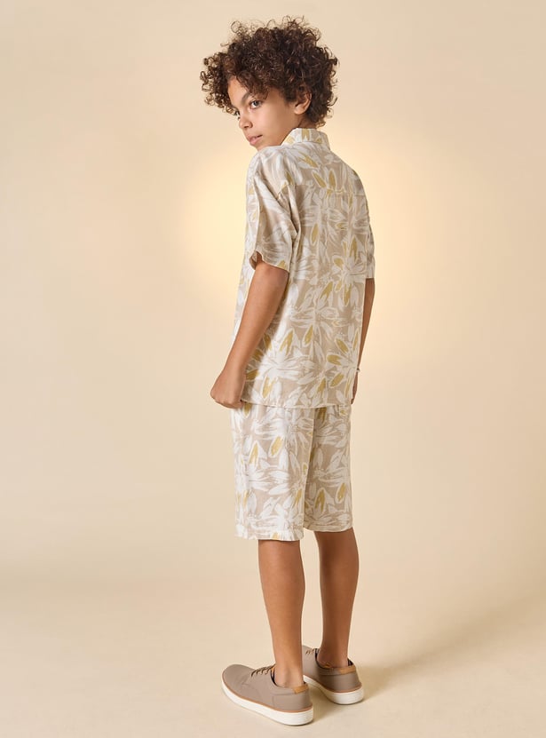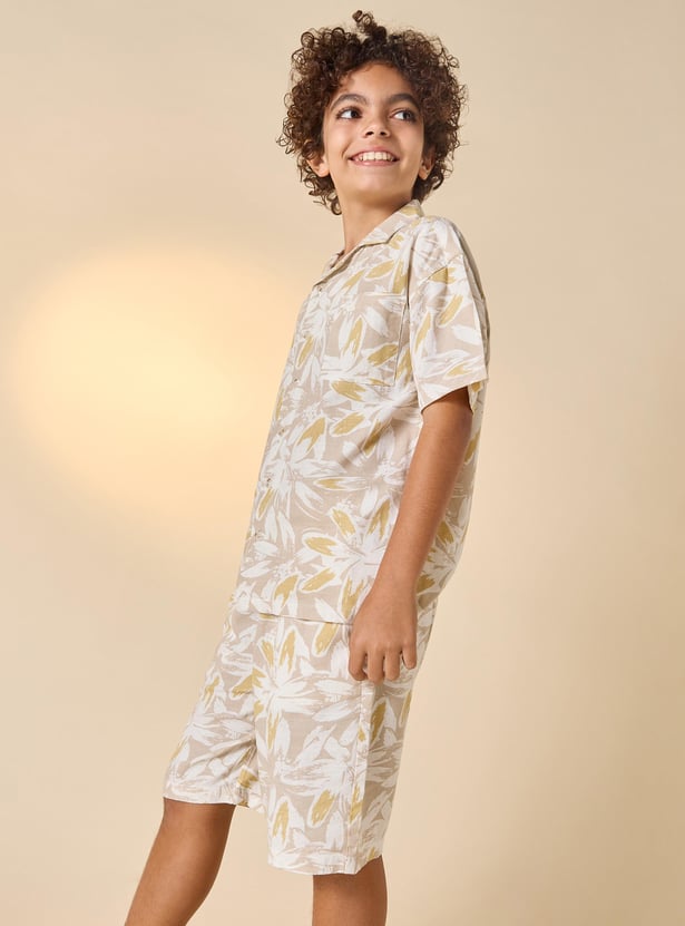 The set is a fun and vibrant outfit perfect for kids. The set includes a short-sleeve shirt and matching shorts, both featuring a playful all-over print that adds a splash of colour and excitement. Made from soft, breathable fabric, this set ensures comfort throughout the day, whether your child is playing, exploring, or just relaxing. The easy-to-wear design makes it a practical choice for everyday adventures.
