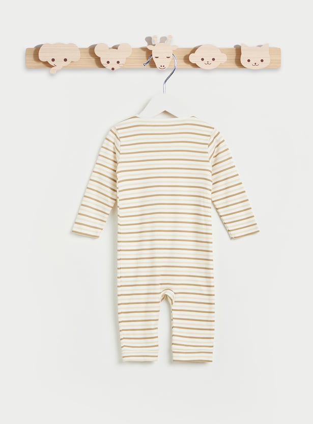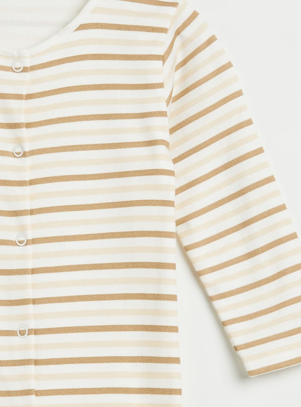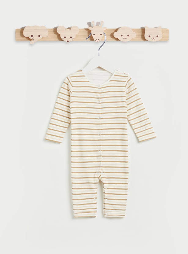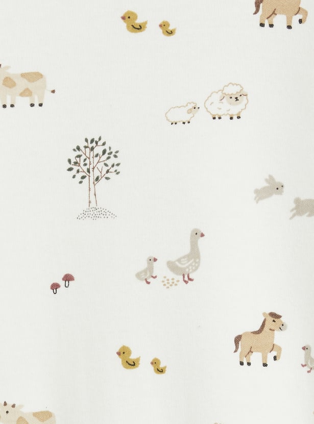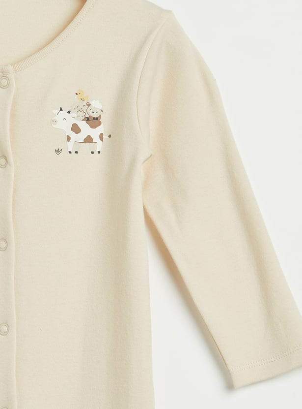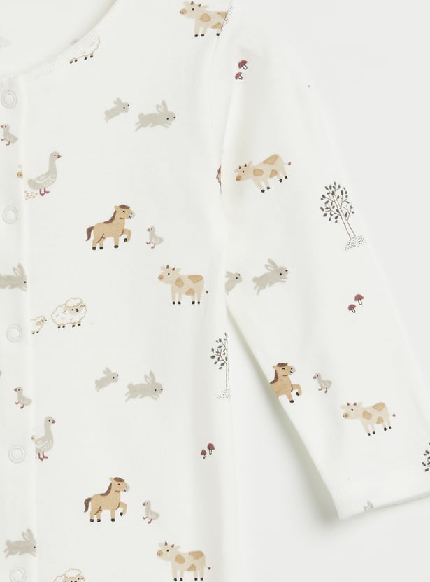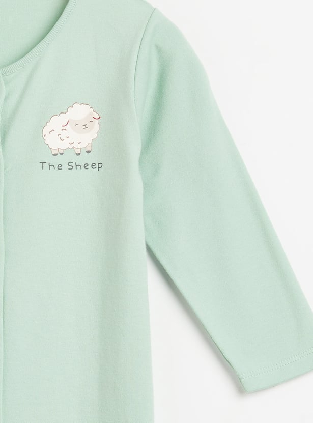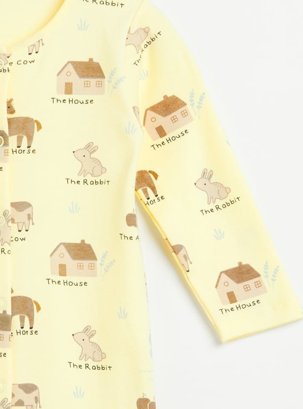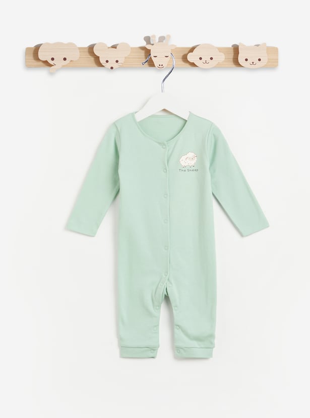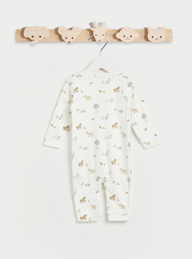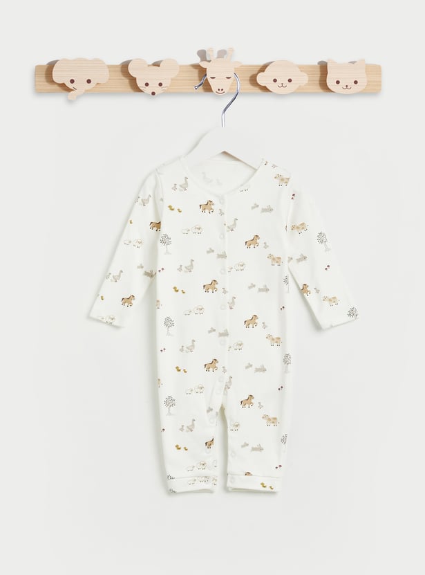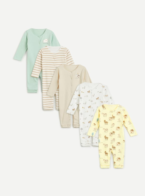 This pack of five sleepsuits is perfect for baby boys, featuring adorable animal prints that are sure to bring a smile to your face. Designed with a comfortable crew neckline and long sleeves, these sleepsuits keep your little one cozy throughout the night. The convenient front button closure allows for easy dressing and quick changes, making them as practical as they are cute. Crafted from soft, breathable fabric, they’re gentle on delicate skin and ideal for all-night comfort.