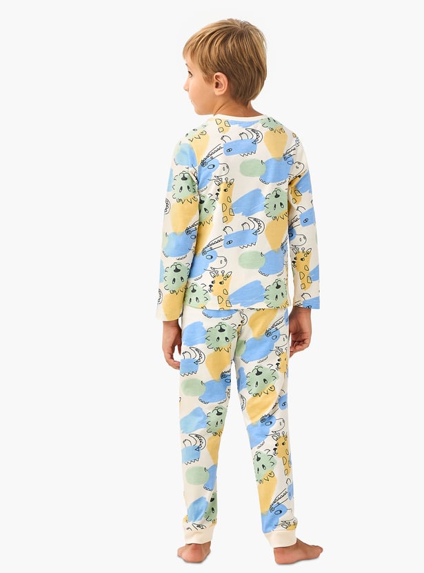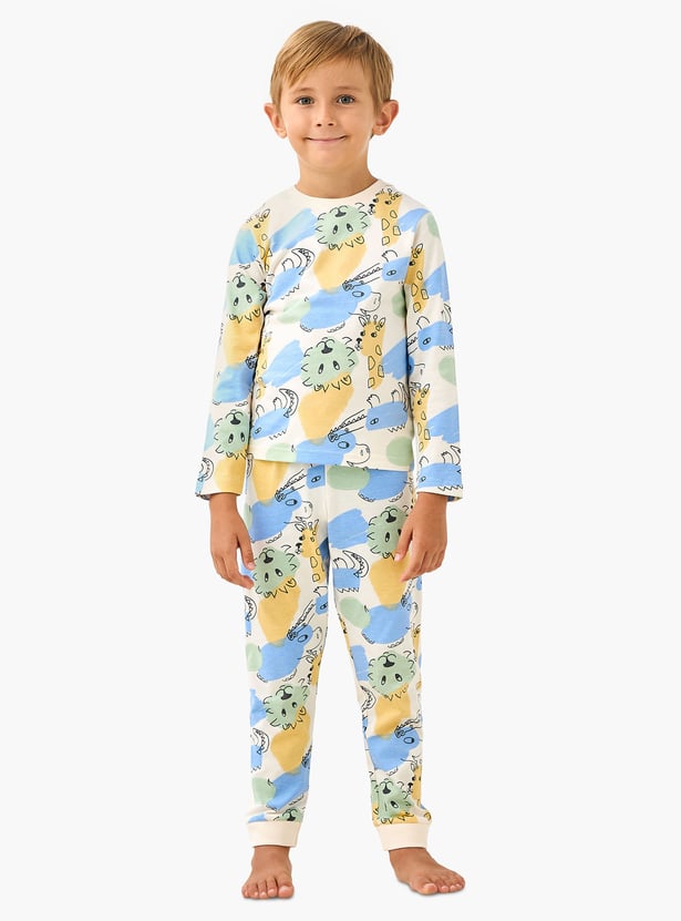 Ensure a comfortable night's sleep for your little one with this charming pyjama set, featuring a playful all-over animal print. This two-piece set is crafted from breathable fabric, making this set gentle on delicate skin for all-night comfort. The tee is designed with long sleeves and the coordinating pyjamas have an elasticated waist and cuffed ankles, a design that ensures a secure yet flexible fit. This delightful animal print sleepwear is a perfect choice for lounging on cool evenings and ensuring your child enjoys a restful slumber.