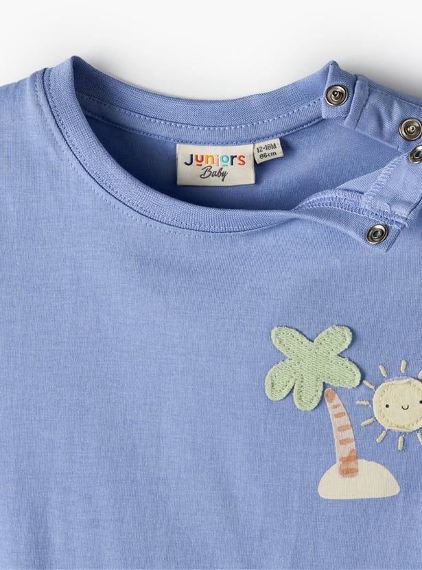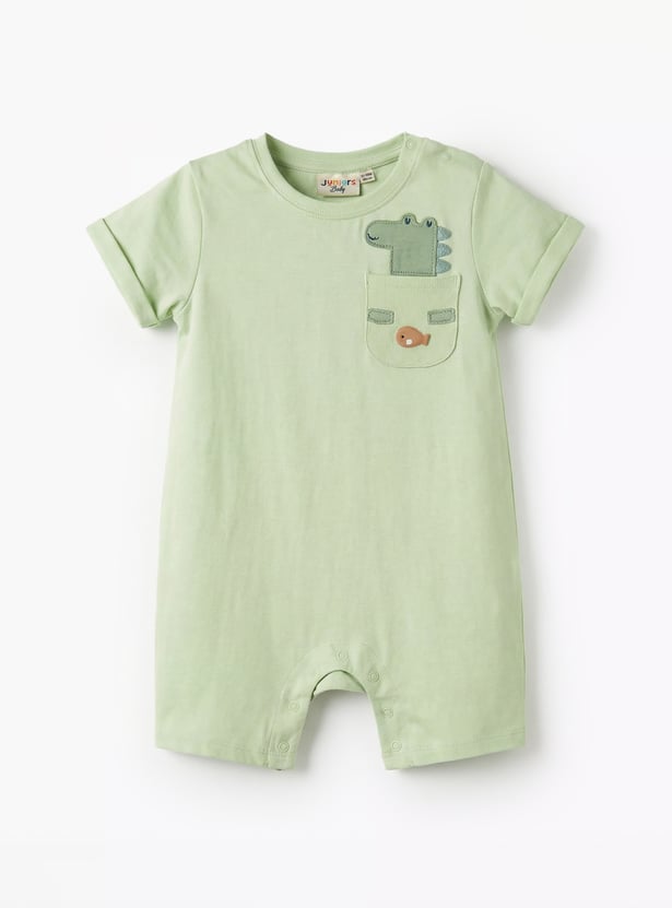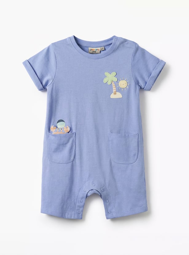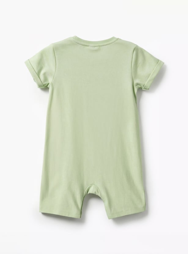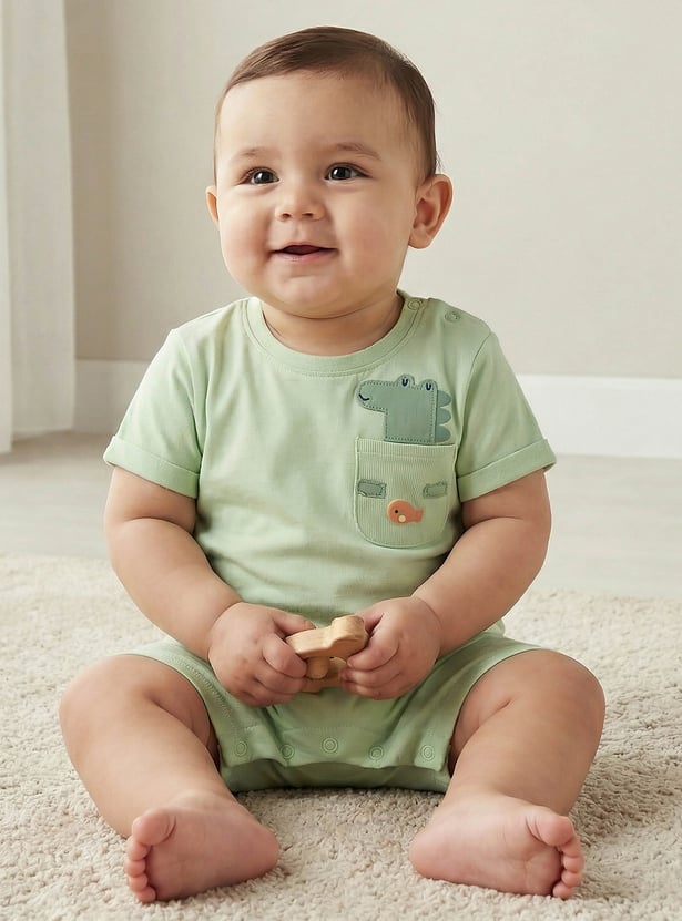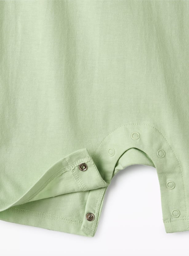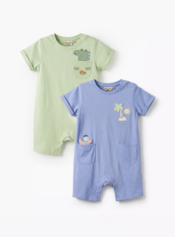 Dress your little one in comfort and charm with this delightful set of two baby rompers, perfect for everyday wear. The convenient snap button closure facilitates easy nappy changes, making these rompers a practical addition. These short-sleeve rompers are made with soft fabric, offering both style and ease for infants.