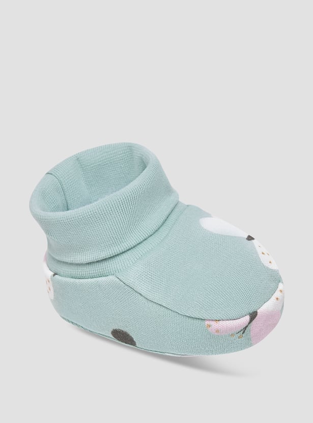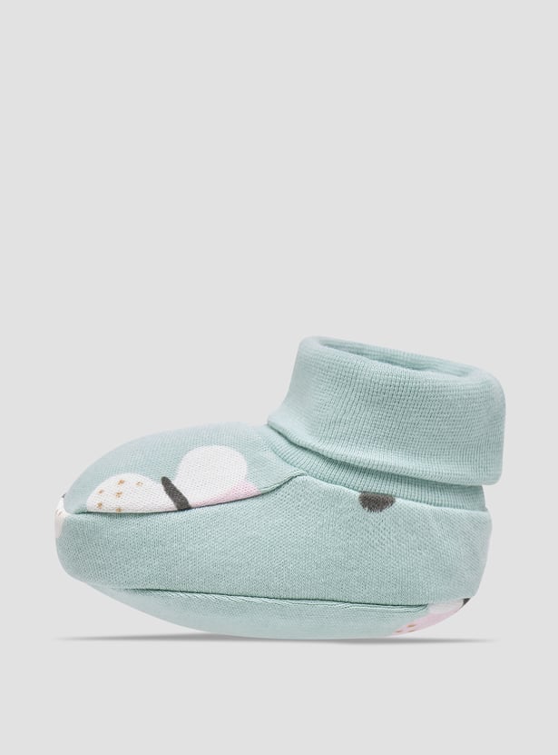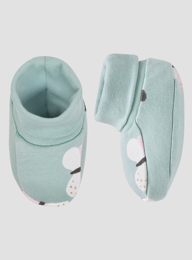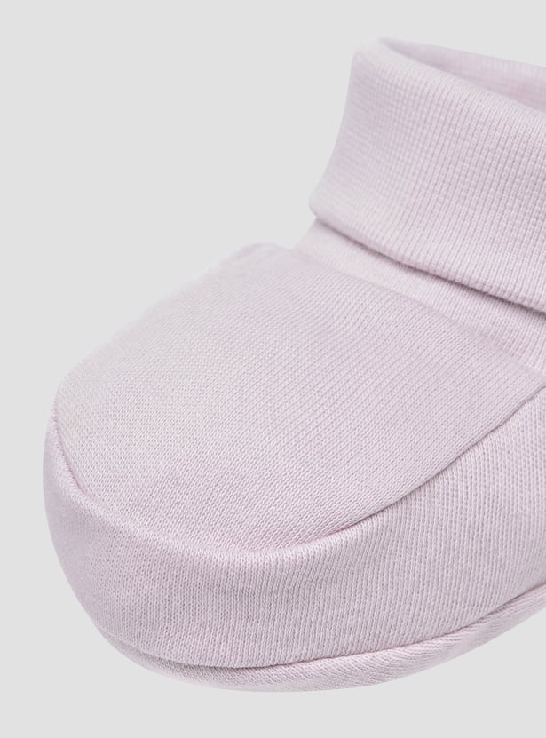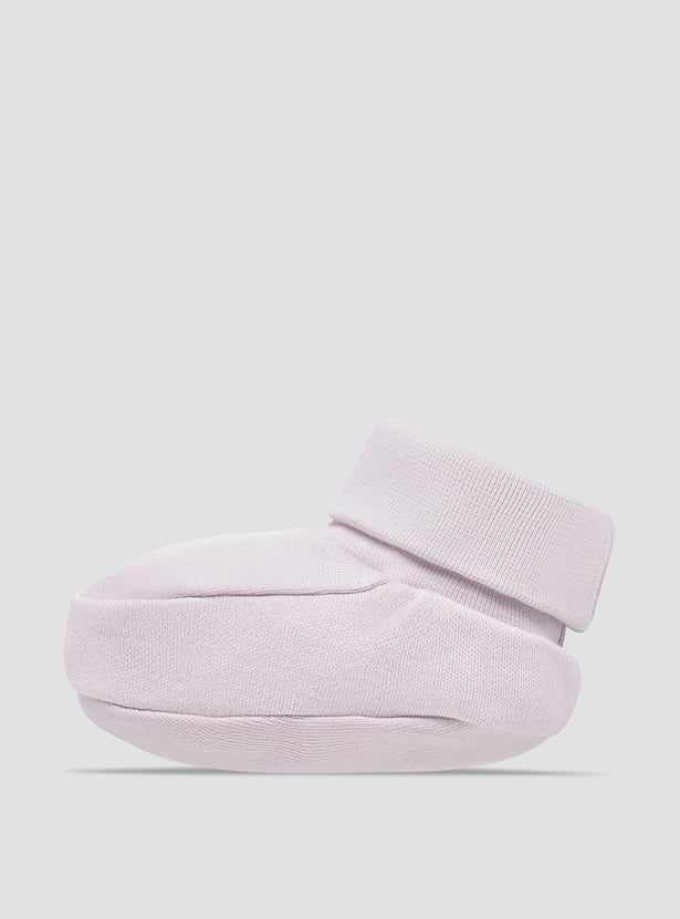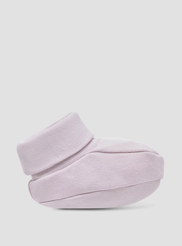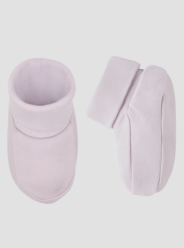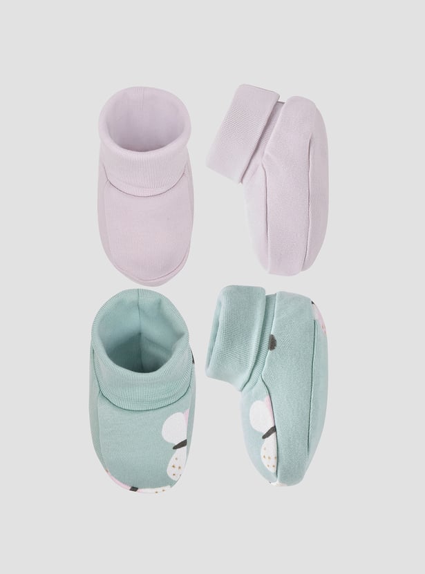 Ensure tiny feet remain warm and comfortable with this delightful two-pack of infant booties. Crafted from soft, breathable fabric, these booties provide gentle warmth without restricting movement. The ribbed cuffs offer a secure yet flexible fit, making them ideal for everyday wear. These essential baby booties are perfect for keeping little ones snug during cooler temperatures.