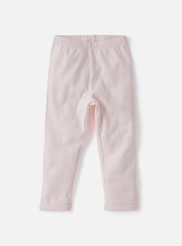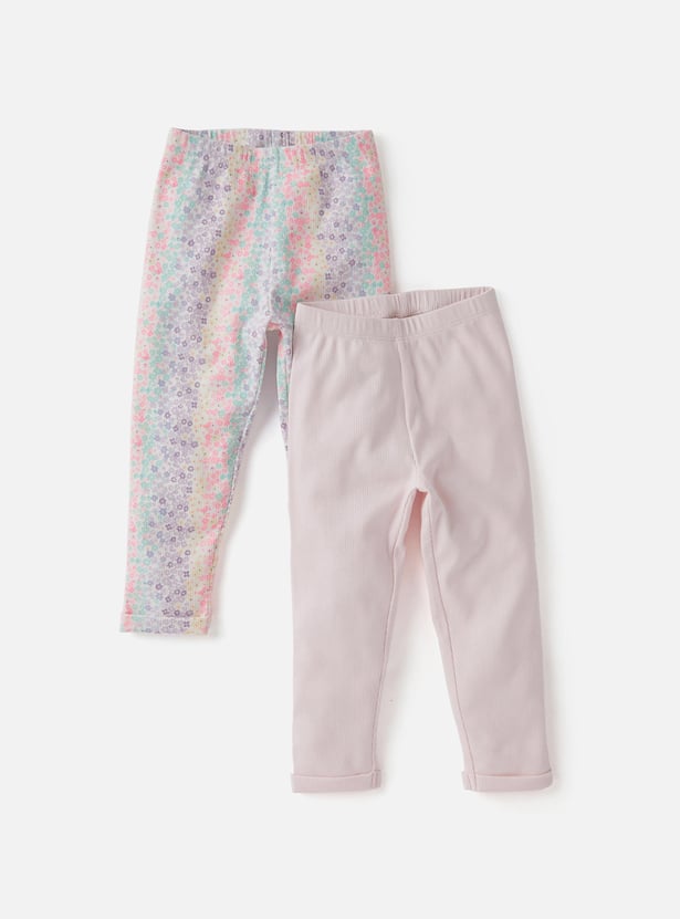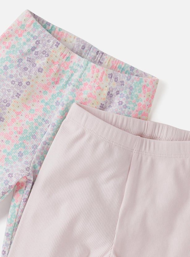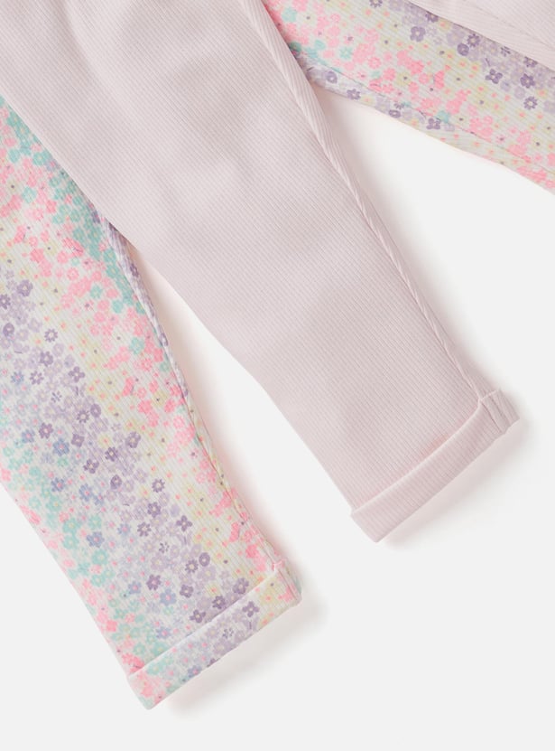 Enhance your child's wardrobe with this set of two assorted leggings, featuring a ribbed texture. This set includes one printed and one solid pair, both made from soft, stretchy fabric for a comfortable fit. Perfect for mixing and matching, these leggings combine stylish designs with practical wear.