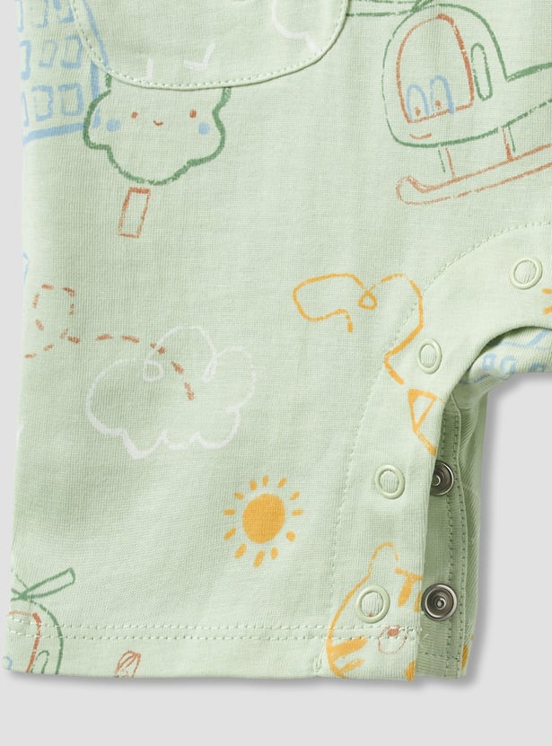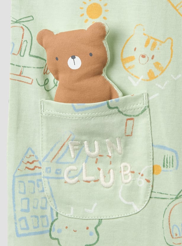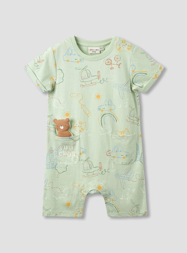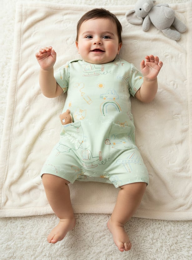 Discover comfort and charm with this two-piece set of short-sleeve rompers, perfect for your little one's everyday adventures. Crafted from soft, breathable fabric, these rompers feature convenient snap button closures for effortless nappy changes. One romper showcases a playful all-over print with a delightful teddy bear applique, while the other offers a cheerful embroidered design. These adorable rompers provide both style and practicality, ensuring your baby remains comfortable throughout the day.