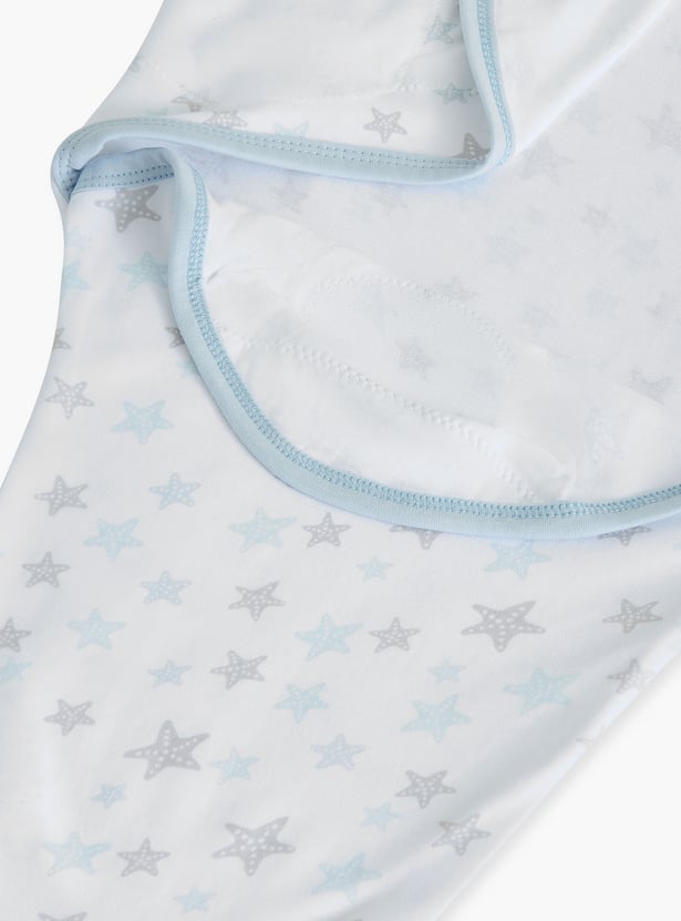 Ensure your baby feels calm and comforted with this set of two adjustable swaddle wraps. Thoughtfully designed to create a snug, womb-like environment, each swaddle offers a secure and gentle fit. The unique pocket fold design allows for quick and convenient diaper changes. Crafted from ultra-soft fabric to provide soothing comfort throughout the day and night.