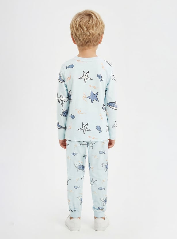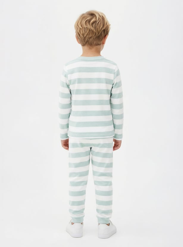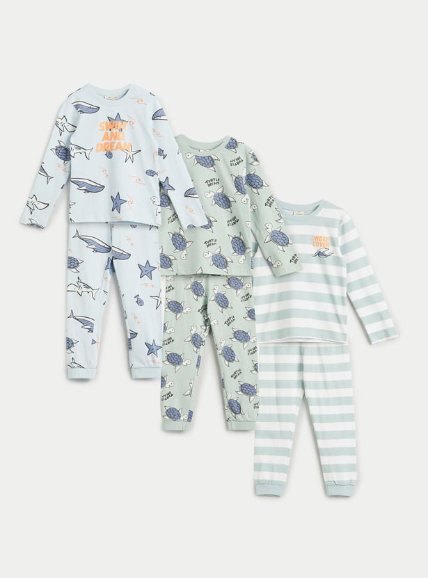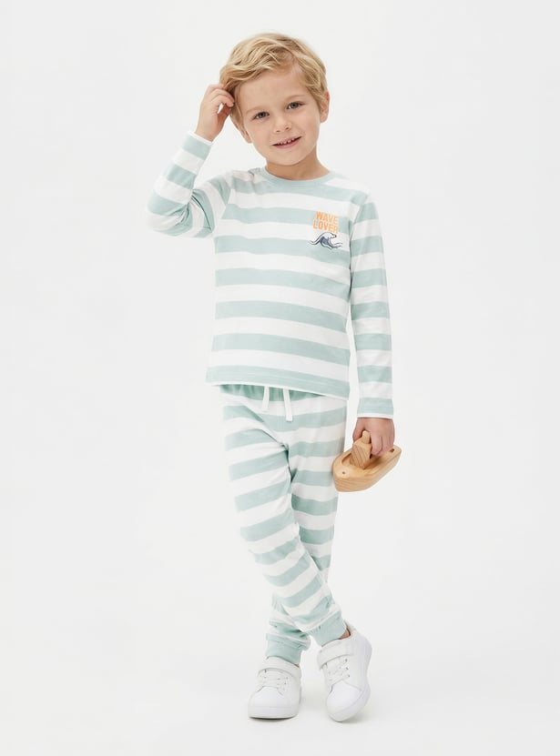 Step into effortless style and comfort with this versatile set of 3 assorted T-shirts and joggers. Each T-shirt features a classic crew neck and full sleeves, paired with matching joggers designed with a drawstring closure.