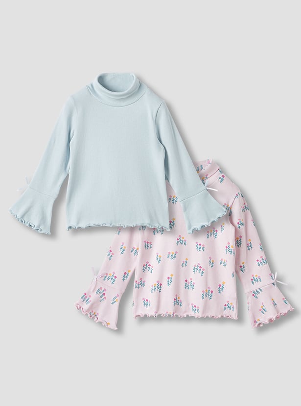 This set of two tops is both cosy and cute with charming bow details at the sleeves. The turtleneck design provides extra warmth during cooler days. Made from soft, breathable fabric to keep her comfy throughout the day.