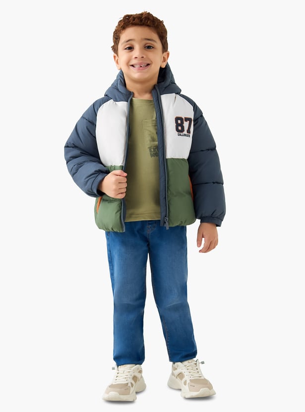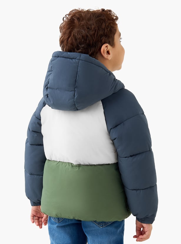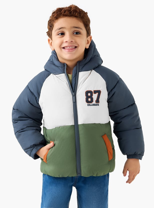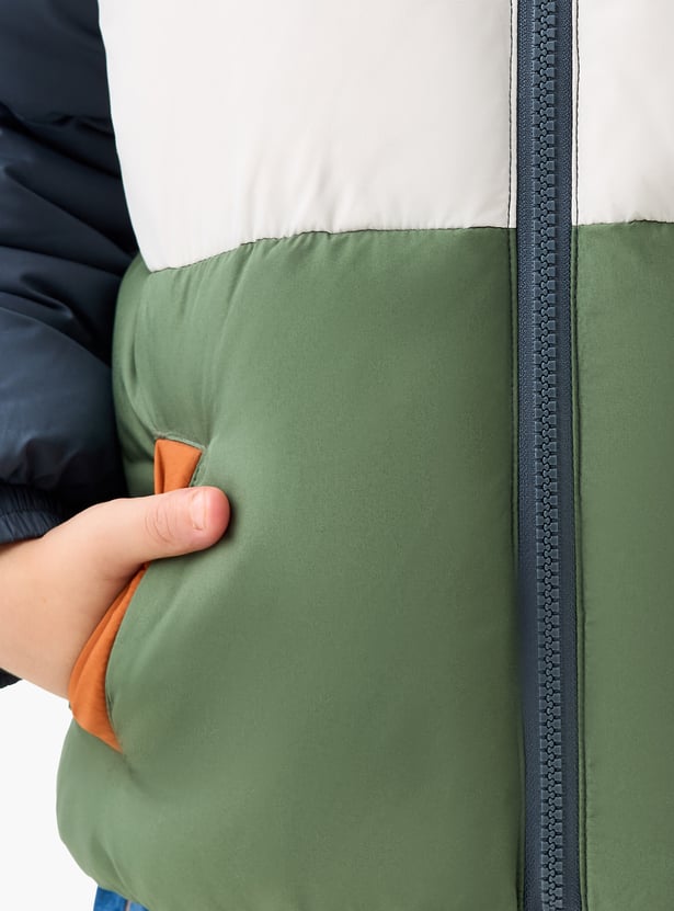 Juniors Colourblock Hooded Heavy Jacket with Zip Closure
