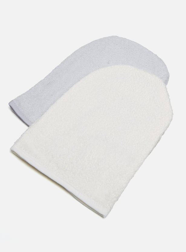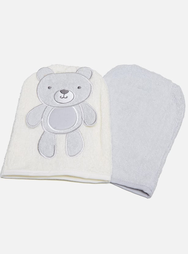 Made from soft fabric, this set of two Juniors wash mittens is a must-have for your baby's bath-time routine. The assorted pack includes an embroidered-patch teddy bear design and a solid style. The wash mittens will make it easy to bathe your baby.