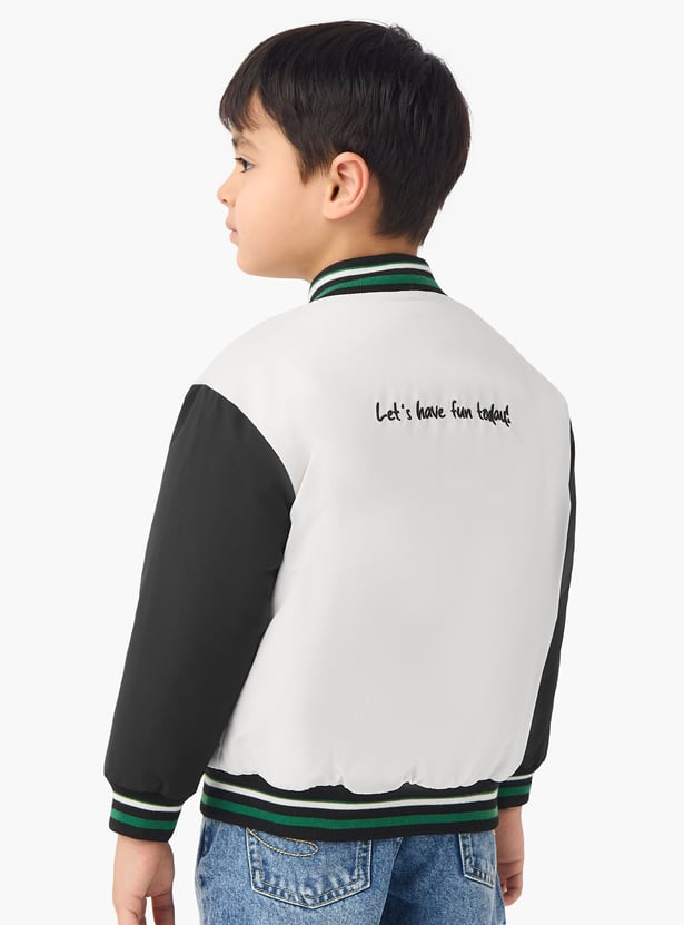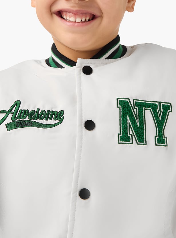 Juniors Embroidered Varsity Jacket with Long Sleeves