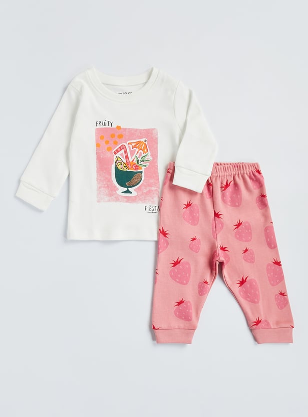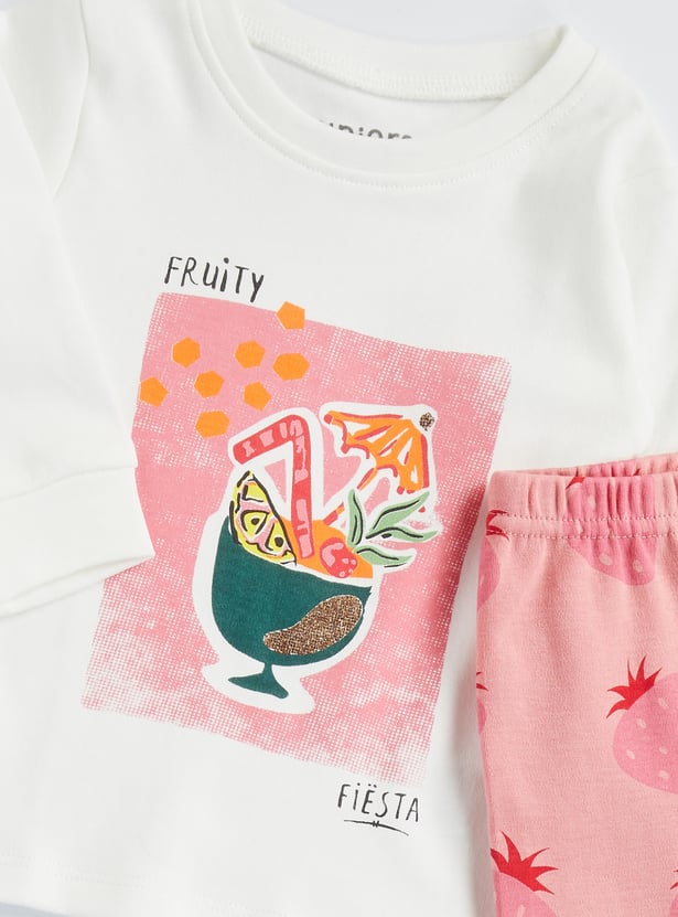Juniors Fruit Print T-shirt and Pyjama - Set of 2