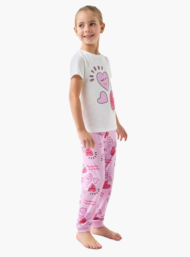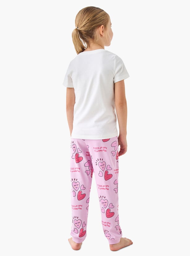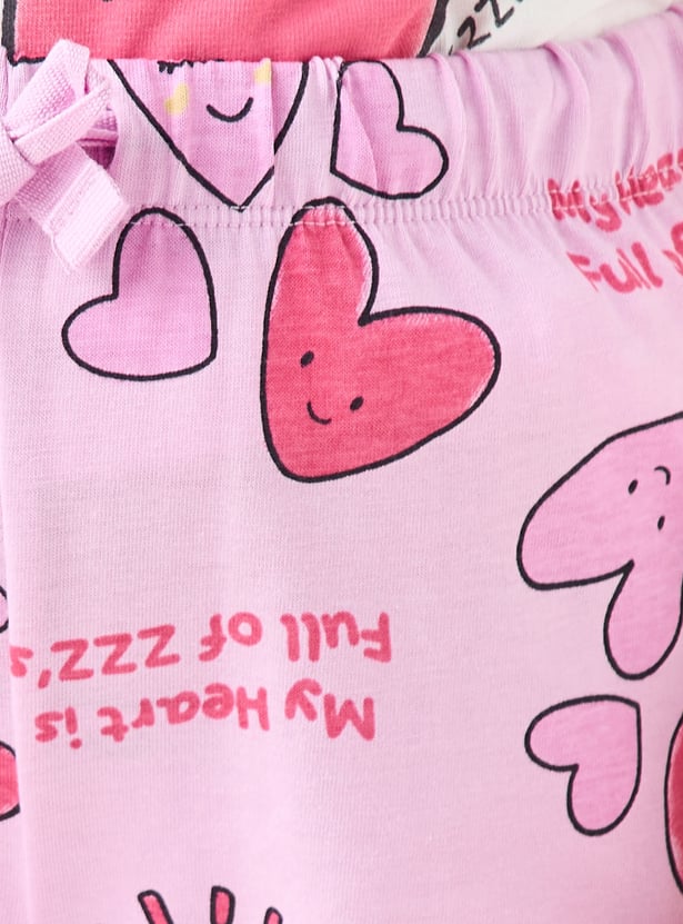 Juniors Heart Print T-shirt and Pyjama Set