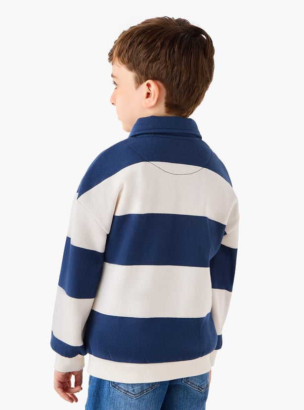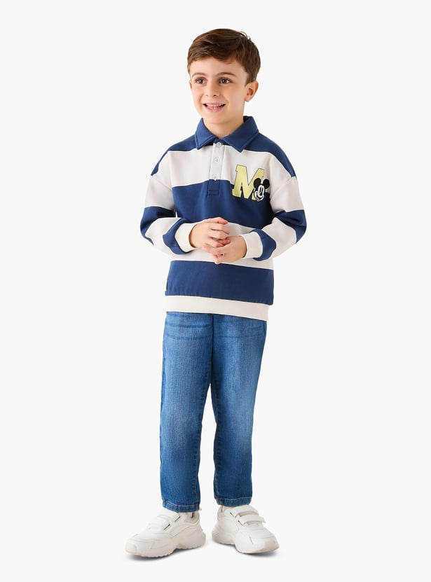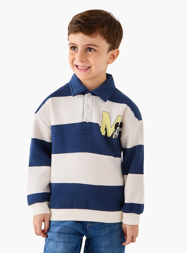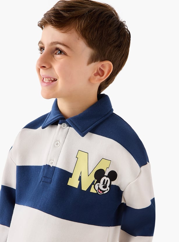 Update your young one's wardrobe with this charming boys' polo sweatshirt, featuring a classic bold stripe design. Crafted from a soft fabric, this long sleeve sweatshirt ensures all-day comfort, while the smart collar and button placket provide a polished look. The embroidered Mickey Mouse detail adds a playful touch, making this a standout piece.