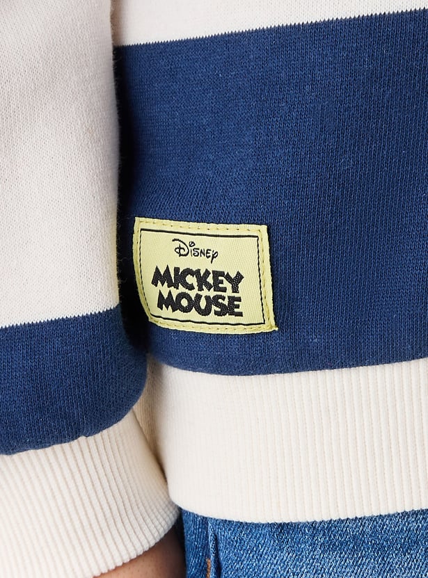 Juniors Mickey Mouse Print Polo Sweatshirt with Long Sleeves