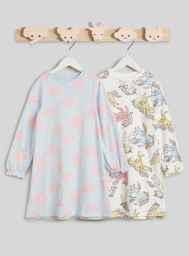 Juniors Printed Night Dress - Pack of 2