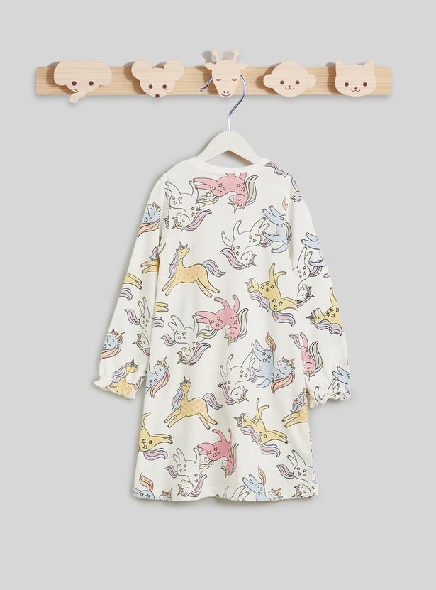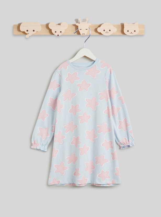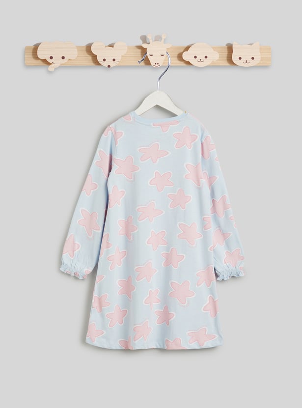 This pack of two printed night dresses offers comfort and style for restful nights. Designed with a round neck and full sleeves, they provide a relaxed and cosy fit for bedtime. Featuring assorted prints and crafted from soft fabric, they ensure gentle comfort throughout the night.