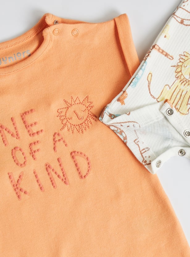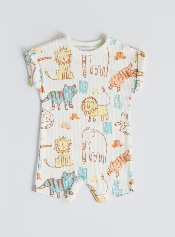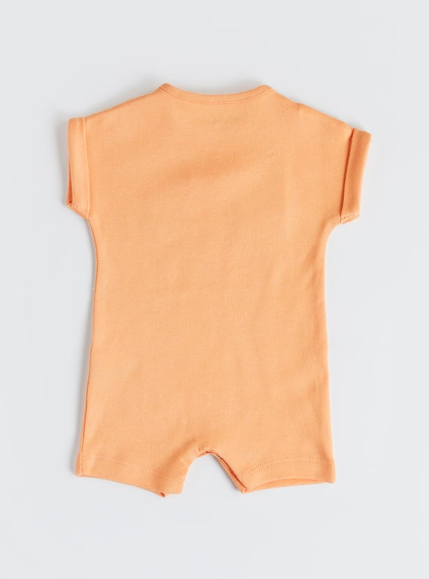 Brighten up your little one’s wardrobe with these printed rompers, designed with a crew neck, half sleeves, and a snap button closure for fuss‑free dressing. A fun, cheerful style that makes everyday play extra delightful, crafted from soft fabric for all‑day comfort.