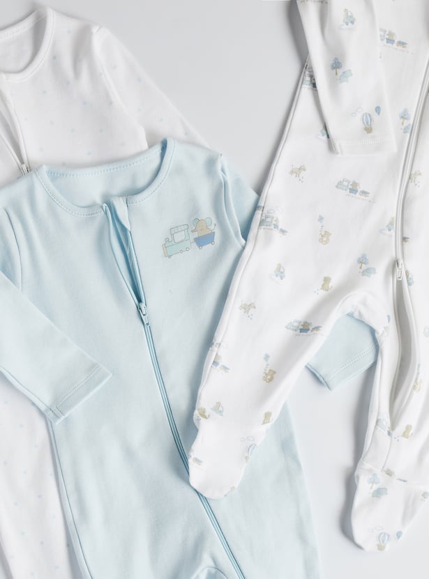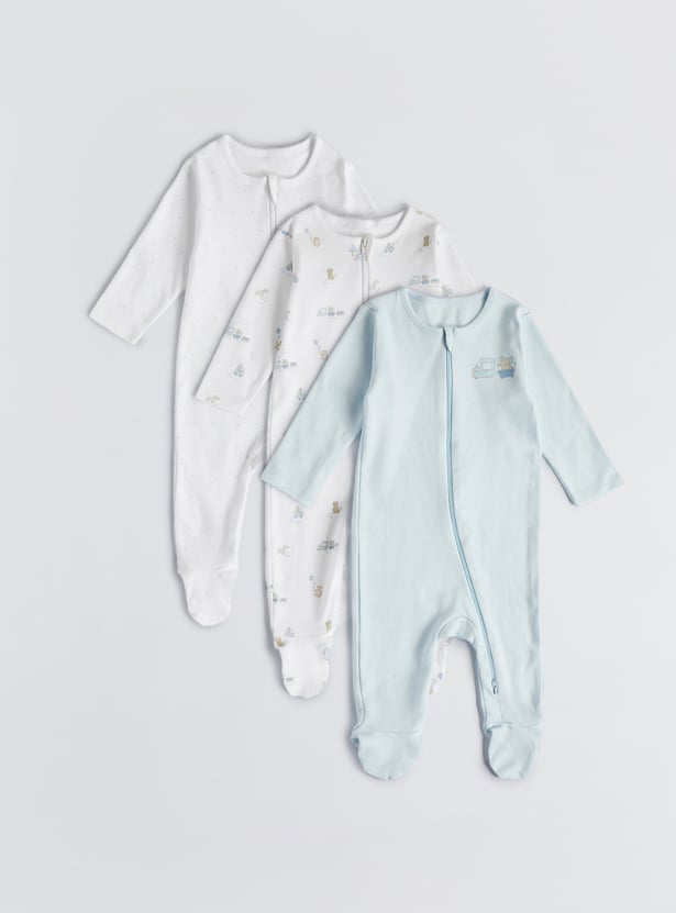 Juniors Printed Sleepsuit with Zip Closure - Set of 3
