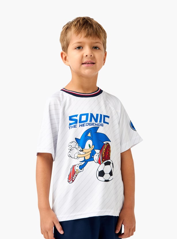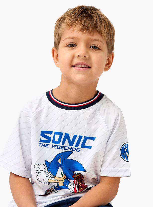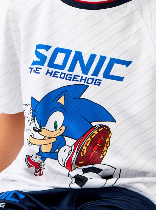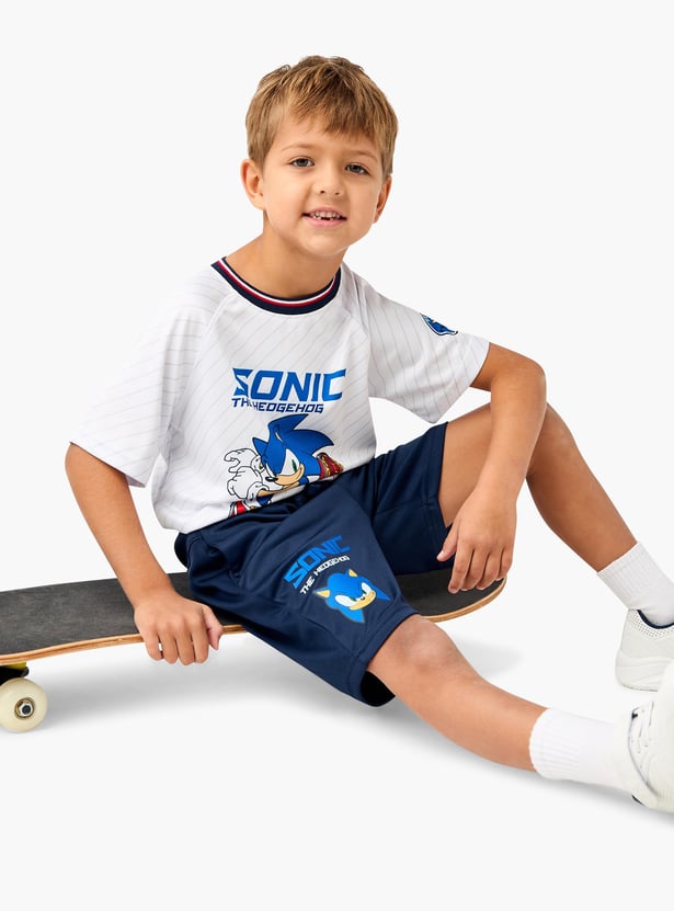 Get your child ready to speed into style with this Sonic the Hedgehog print t-shirt and shorts set. This dynamic set features a vibrant Sonic the Hedgehog print that brings their favourite video game character to life. The short sleeves and comfortable fit make it perfect for active days and casual outings. The matching shorts come with a drawstring waistband for a snug and adjustable fit, ensuring all-day comfort. Made from soft, breathable fabric, this set is ideal for keeping your boy cool and comfortable during playtime or relaxation.