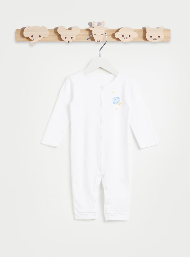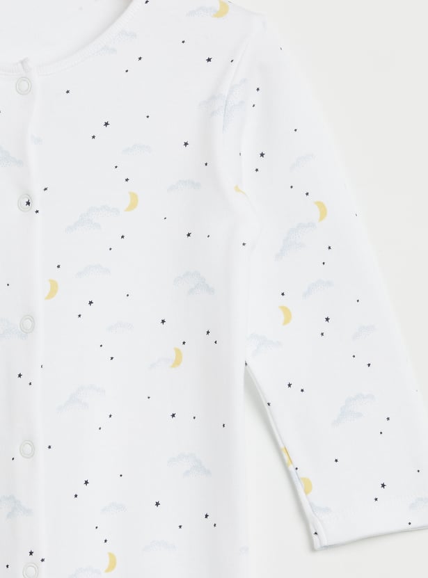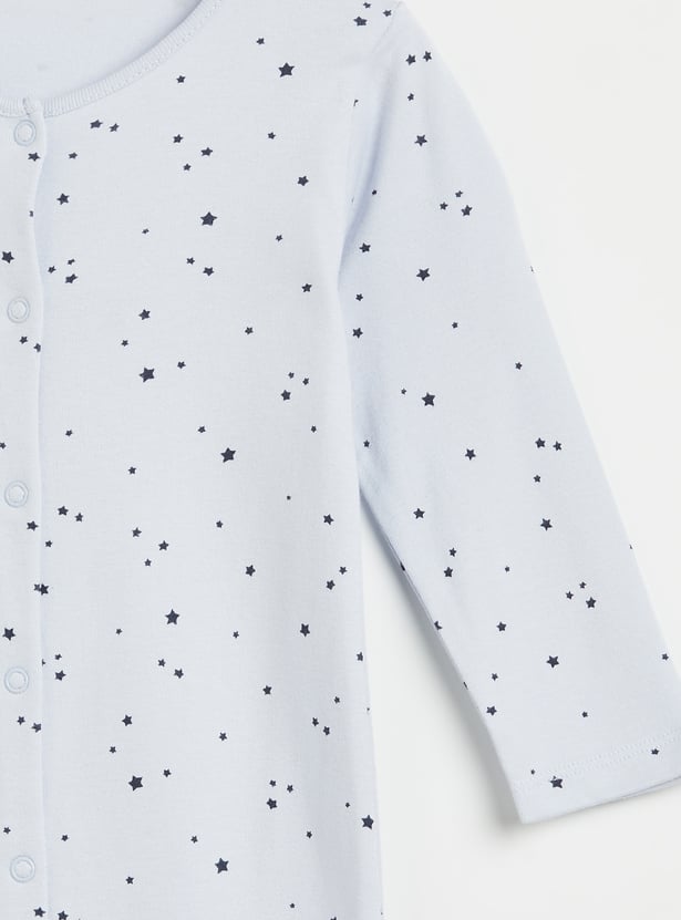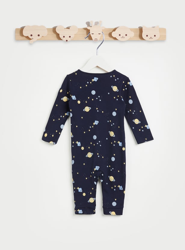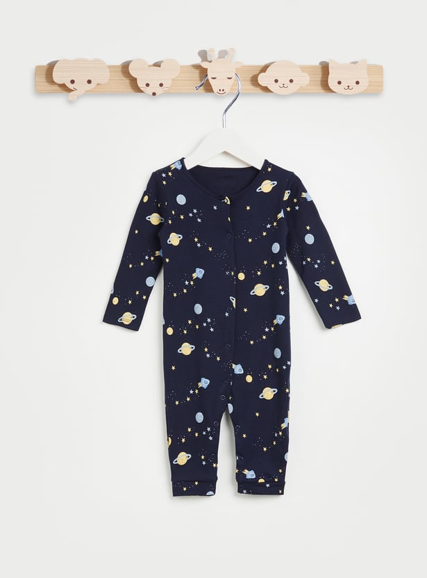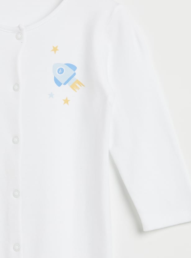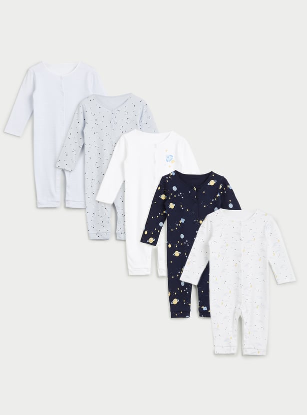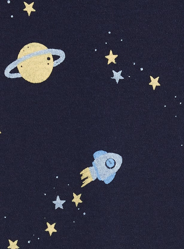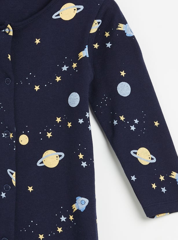 Juniors Space Print Sleepsuit with Button Closure - Set of 5
