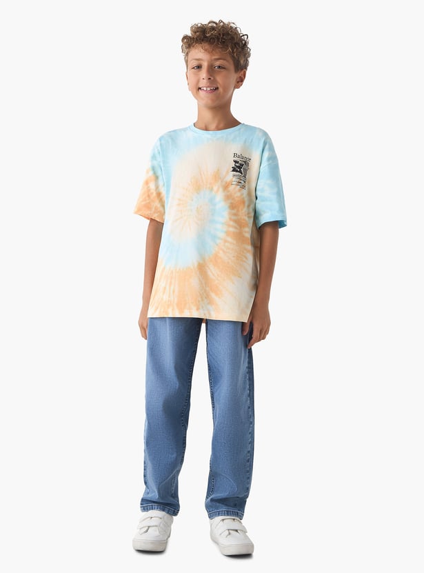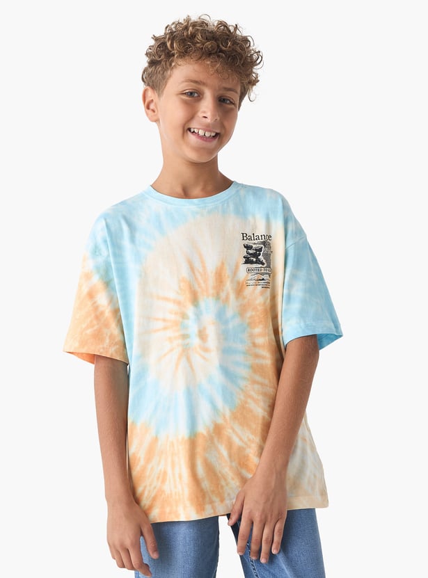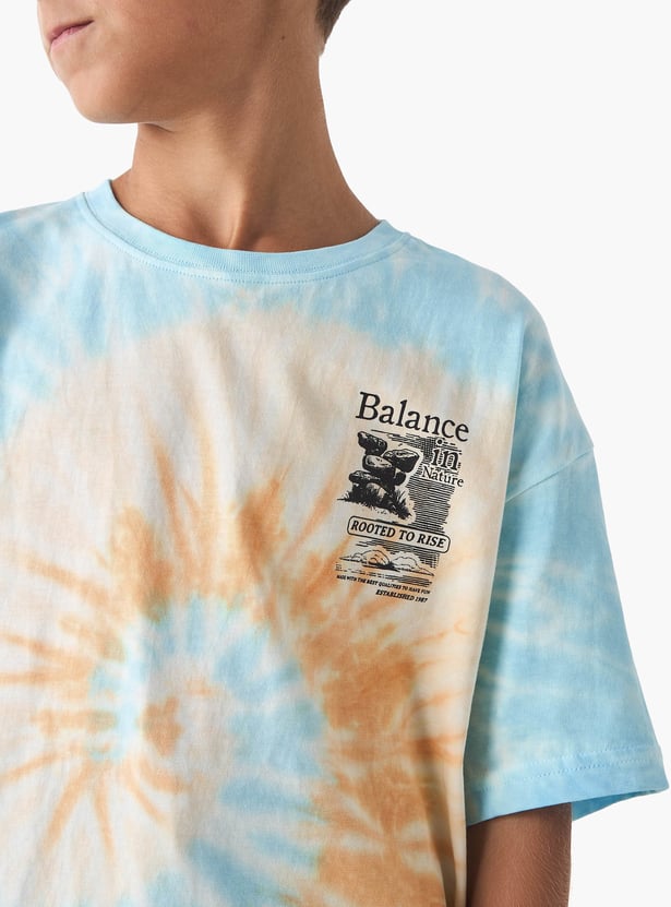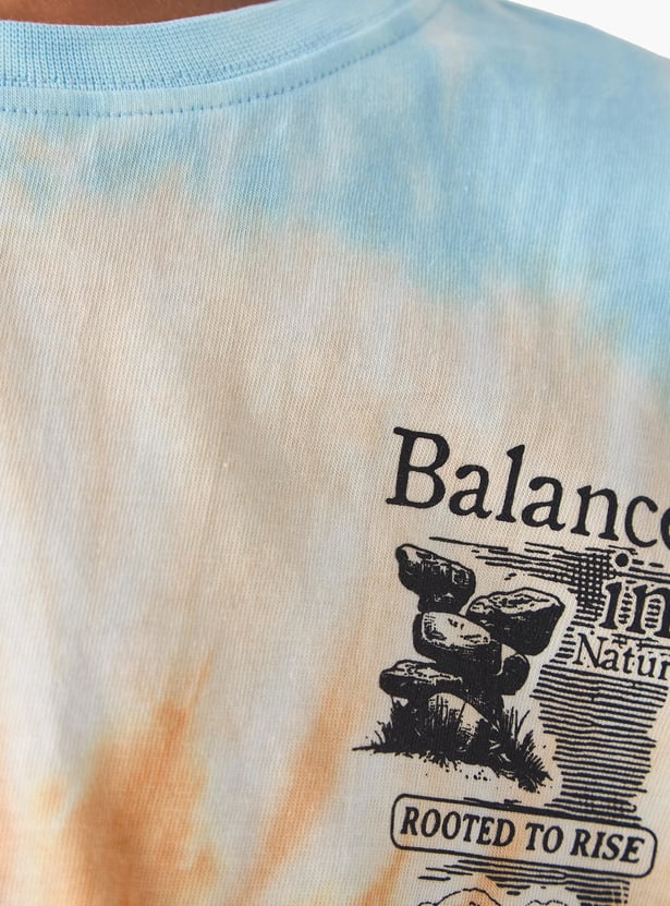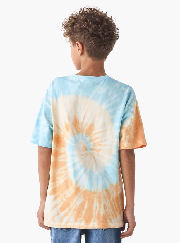 Juniors Tie-Dye Print T-shirt with Short Sleeves