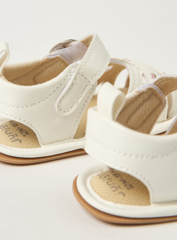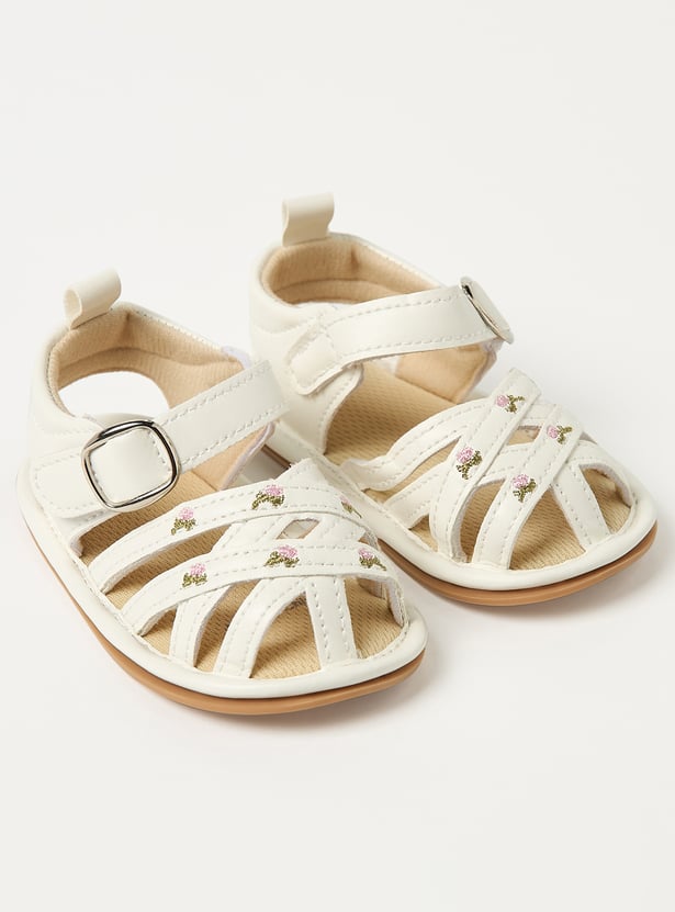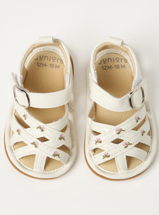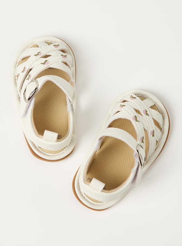Juniors Floral Embroidered Sandals with Hook and Loop Closure