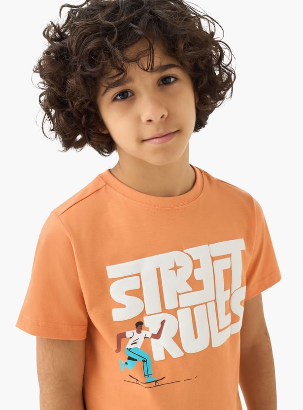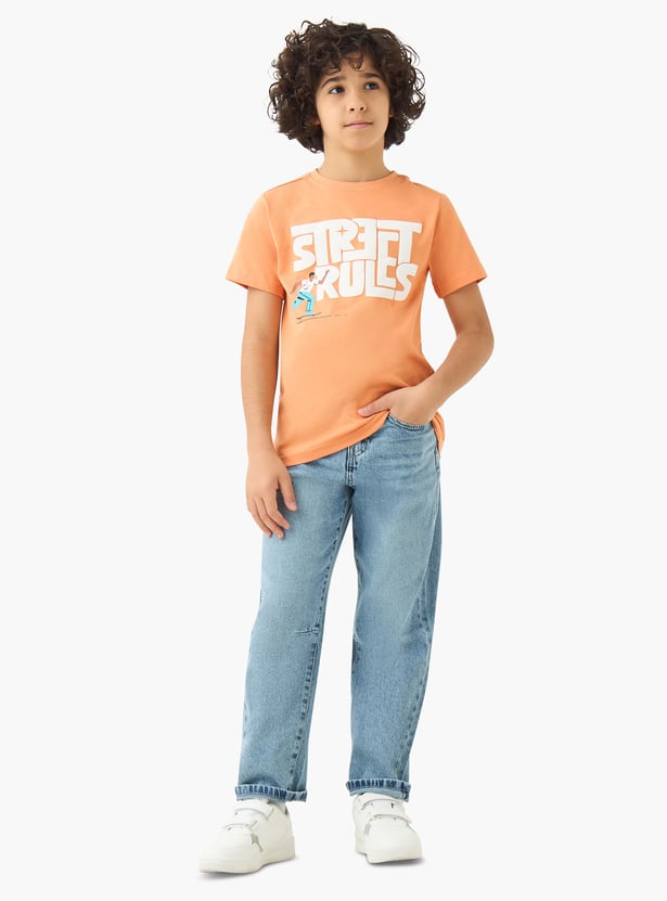 Add playful charm to her wardrobe! This graphic print T-shirt features a crew neck and half sleeves, crafted from soft, breathable fabric for all-day comfort.