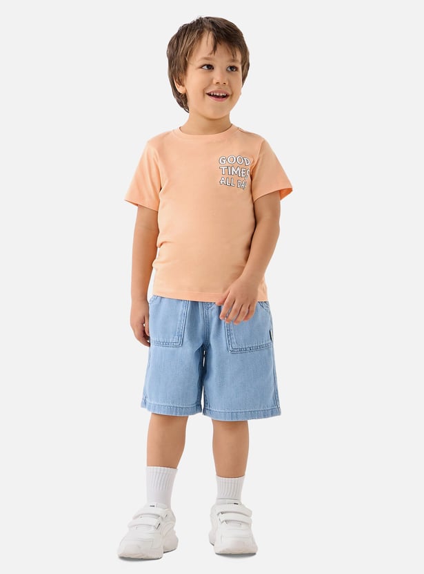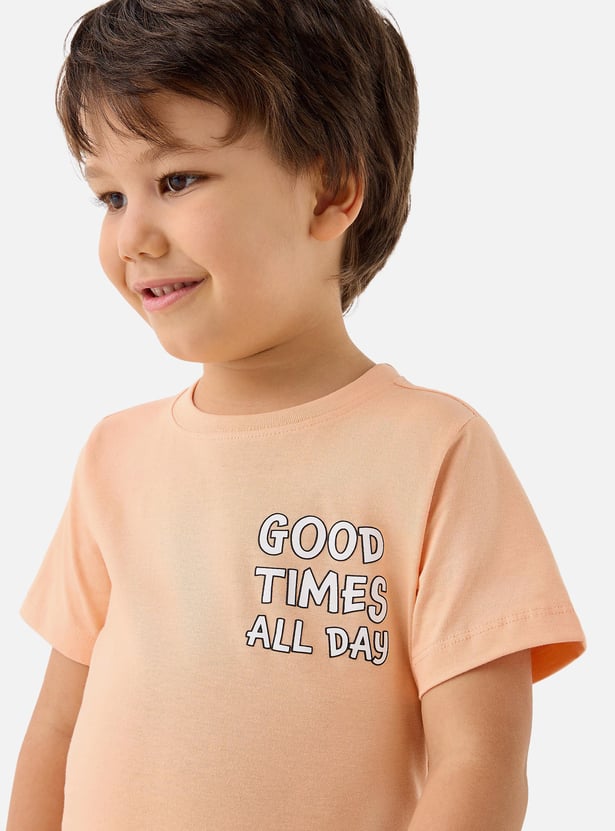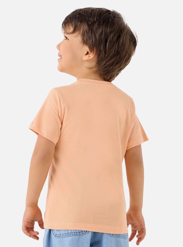 Dress your little man in this charming t-shirt, featuring an adorable slogan print. Made from soft fabric, the tee ensures the utmost comfort to him. Perfect for everyday wear, it features short sleeves and a crew neck.