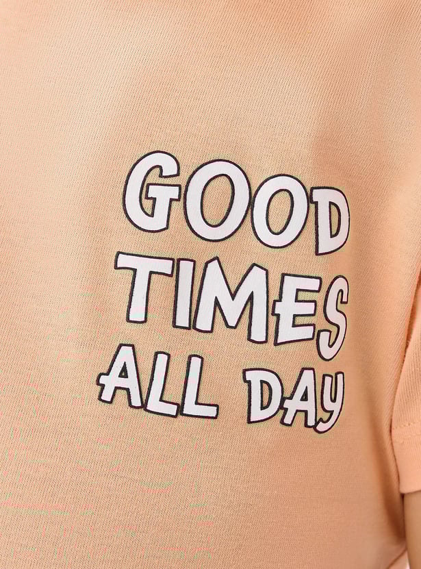 Juniors Slogan Print T-shirt with Short Sleeves and Crew Neck
