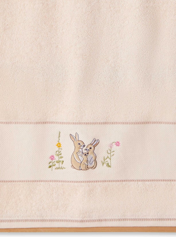 This charming bath towel features an adorable embroidered design, perfect for delicate skin. The absorbent fabric ensures quick drying after bath time, providing comfort for your little one.