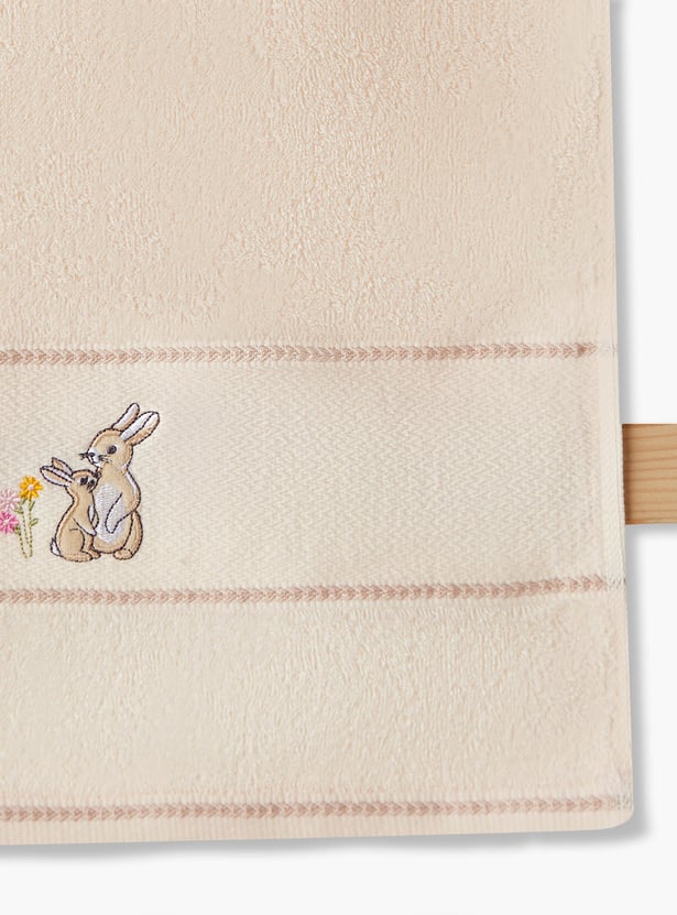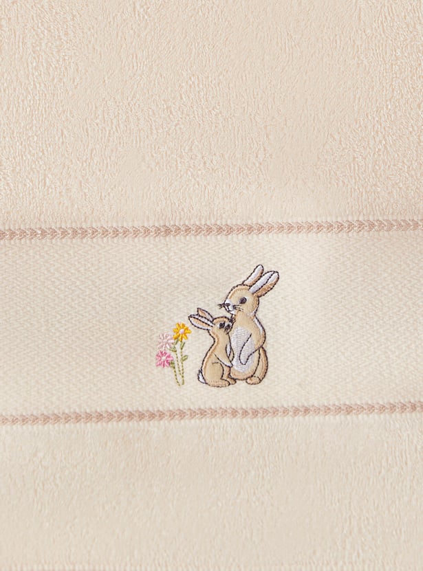 This charming bath towel features bunny embroidery, perfect for sensitive skin. The absorbent fabric ensures quick drying after bath time.