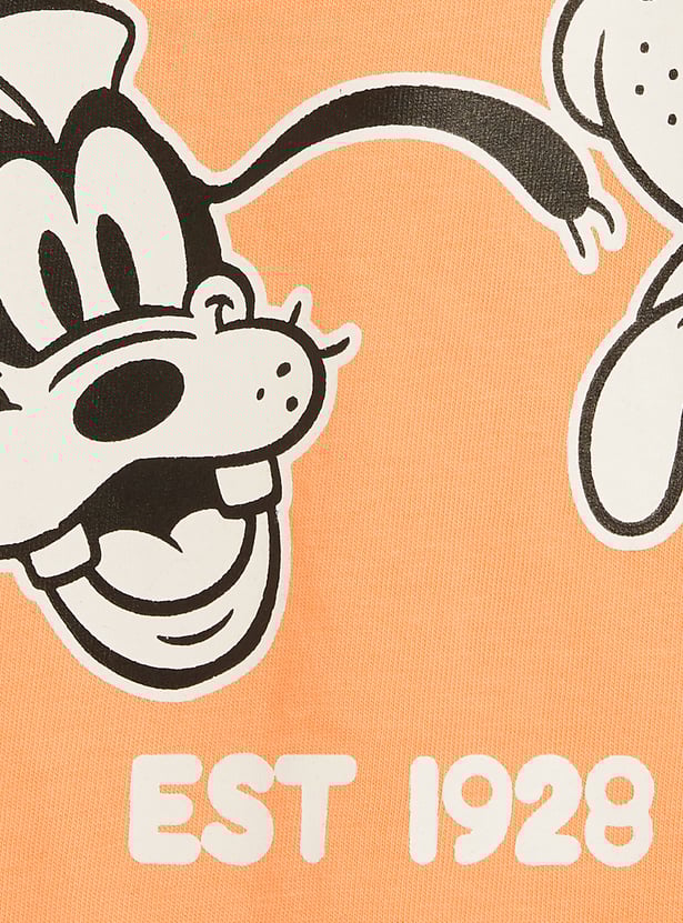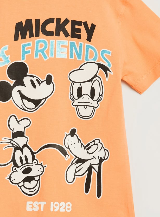 Brighten up casual days with this Mickey and Friends print t-shirt from juniors. Features a cheerful foil print with Mickey Mouse and his friends. Crafted from soft fabric with short sleeves and a crew neckline, it’s perfect for warm-weather fun.