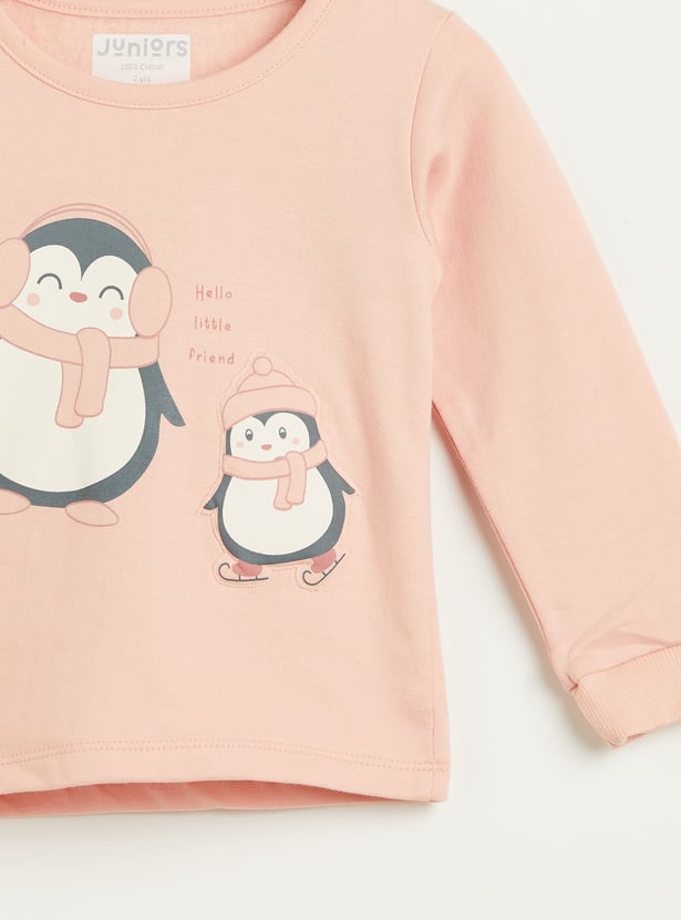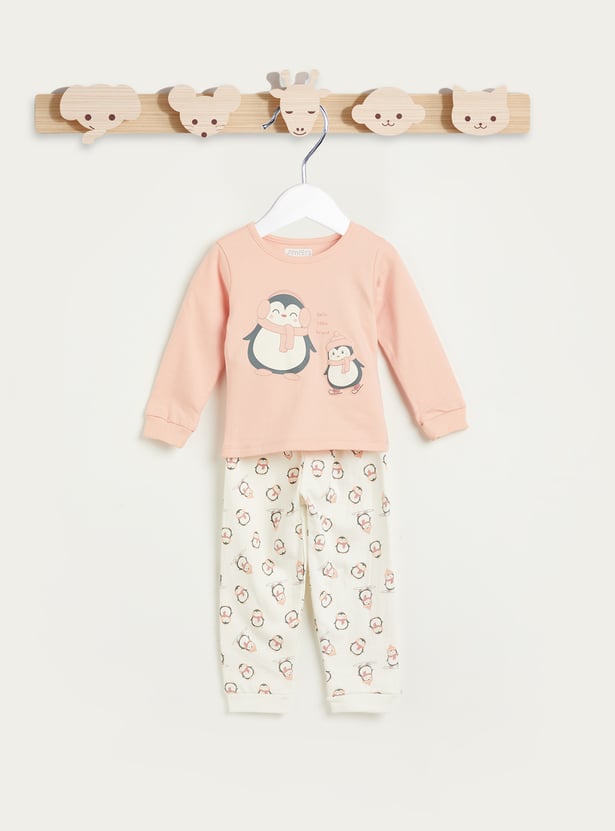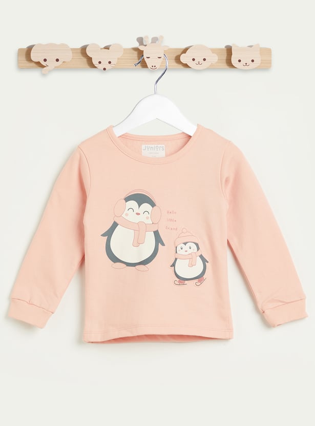 Juniors Penguin Applique Long Sleeves T-shirt and Pyjama Set