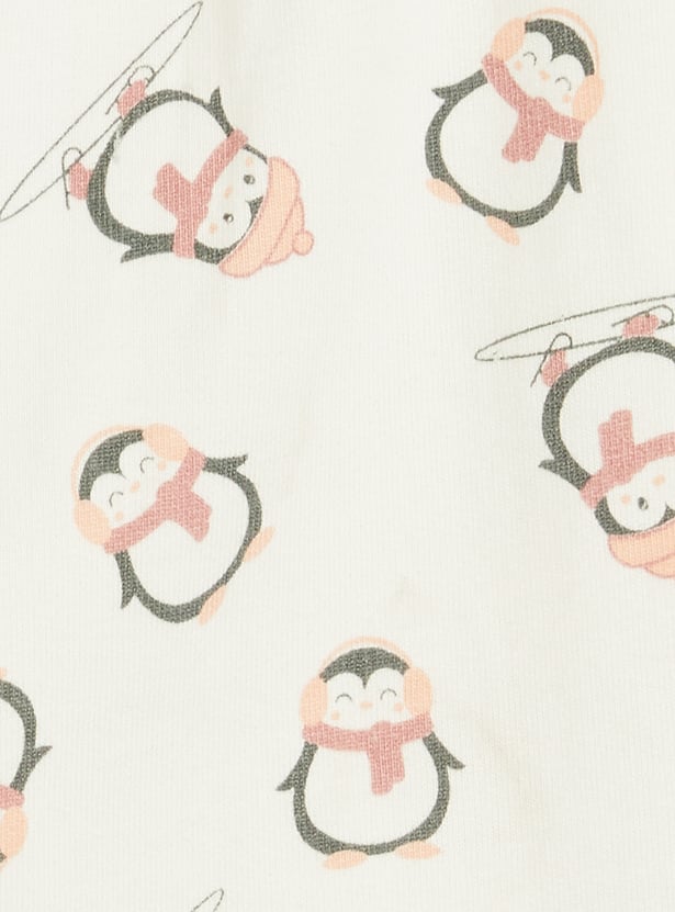 Keep your little one comfortable and stylish with this charming pajama set. Featuring a cute penguin applique on the long-sleeved top and pyjama with an all-over penguin print, it's made from soft, breathable fabric for comfort and warmth. The snap-button closure on the shoulder makes it easy to put on and take off quickly, making it a practical and attractive choice for warm, cozy evenings.