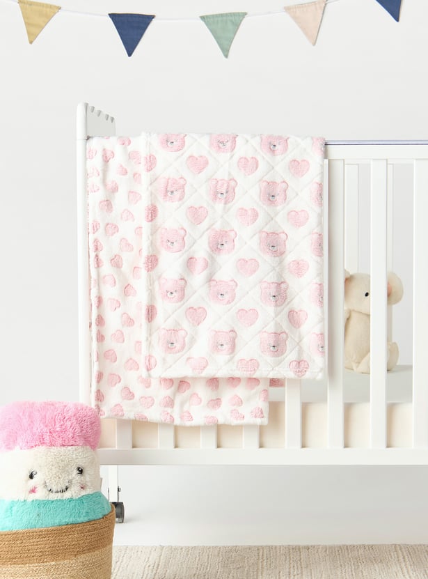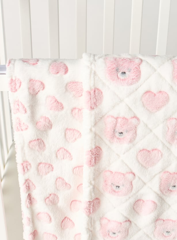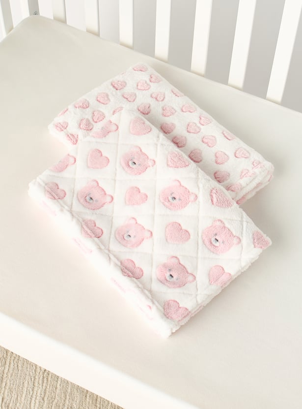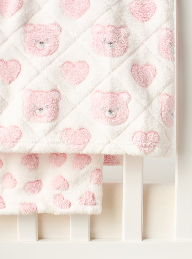 Juniors 2-Piece All-Over Bear Detail Fleece Blanket Set - 76x102 cm