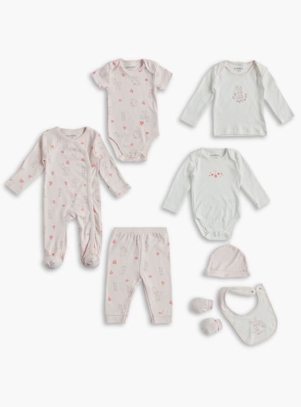 This eight-piece clothing set is a must-have for your newborn's wardrobe. Made from soft fabric, this set includes everything you need to keep your baby comfortable and stylish. Mix and match the pieces to create different outfits for any occasion.