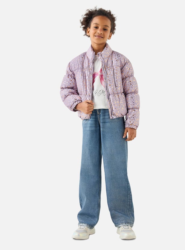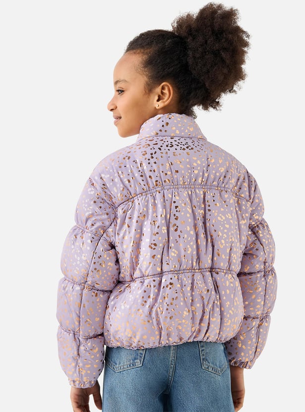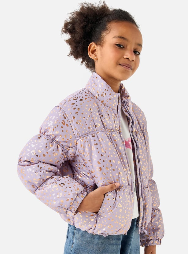Juniors All-Over Print Zip Through Puffer Jacket with Pockets