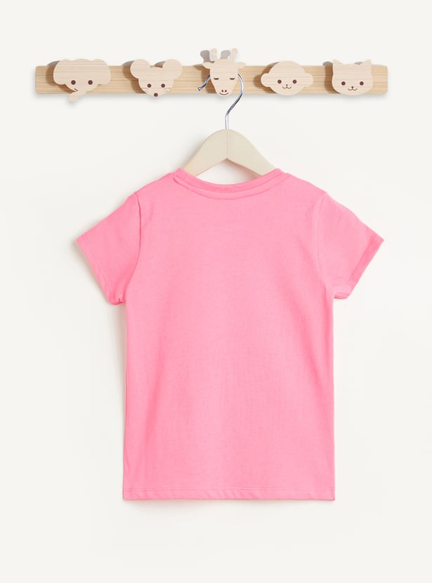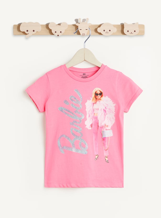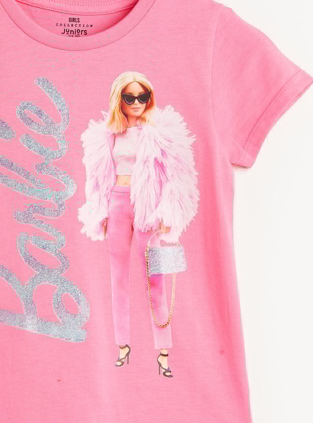 Juniors Barbie Glitter Print Round Neck T-shirt