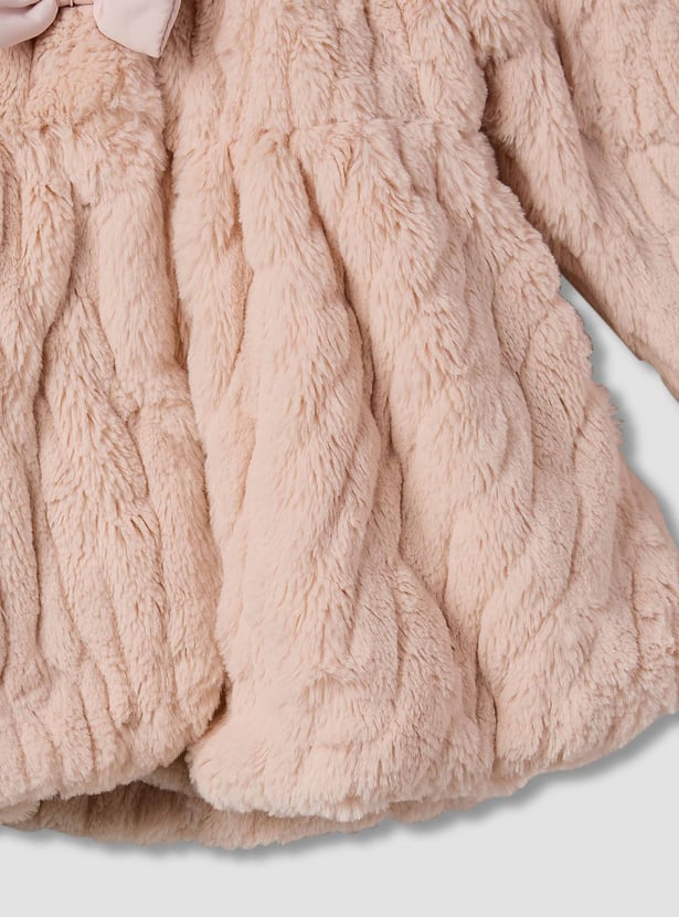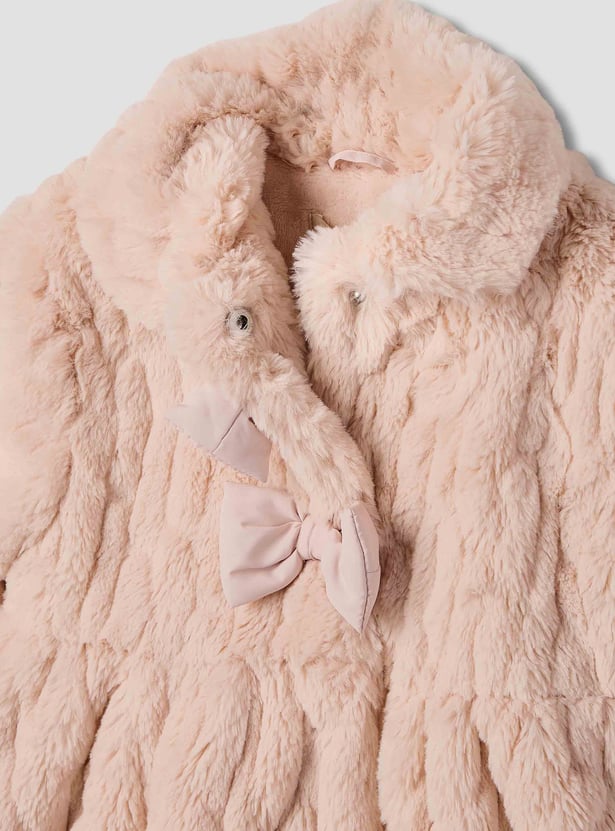 Add a touch of elegance to your toddler's wardrobe with this jacket. The plush fabric offers warmth and comfort, while the neat collar lends a refined look. A delicate bow detail adds sweetness, making it perfect for special outings. Long sleeves ensure extra cosiness during cooler days. Stylish yet practical, it's an adorable layering piece for your little one.