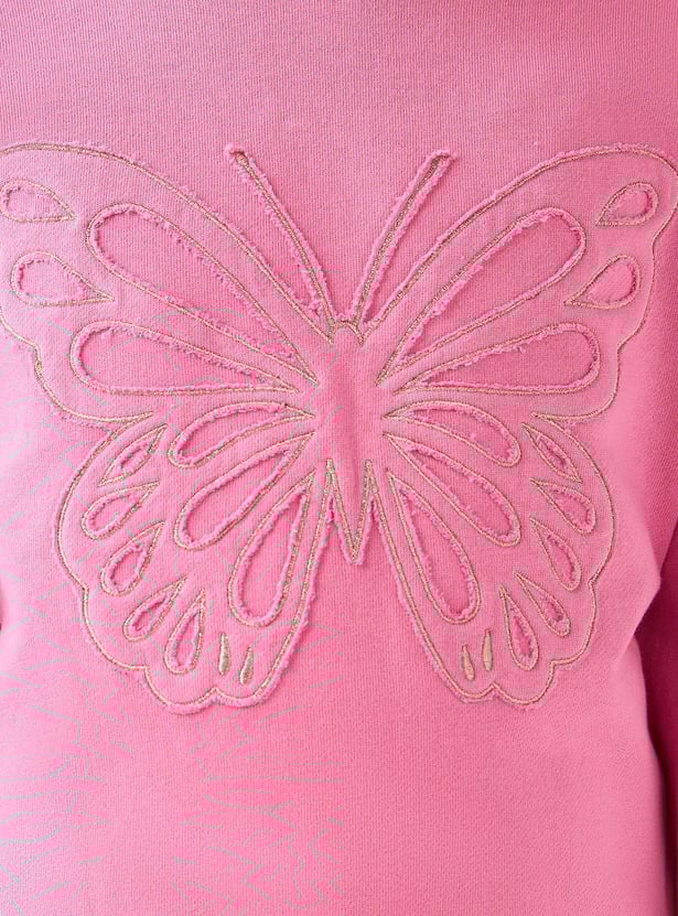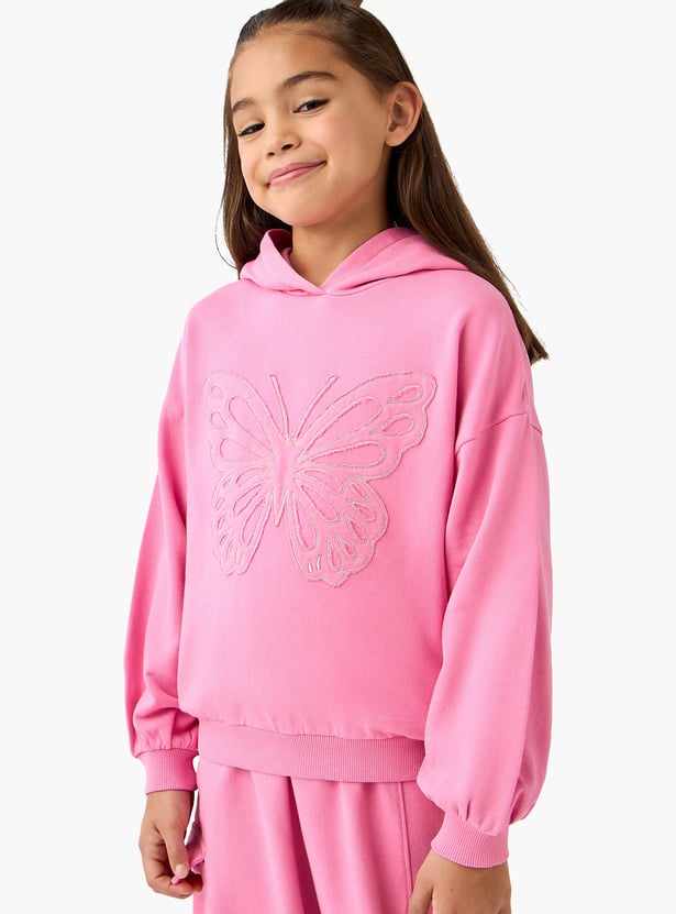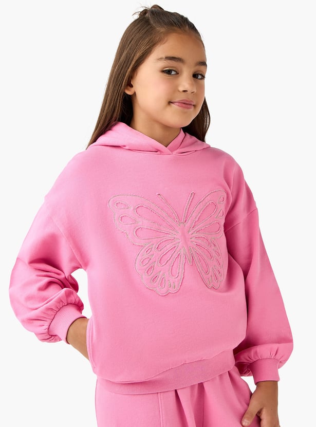 Juniors Butterfly Applique Hooded Sweatshirt and Joggers Set