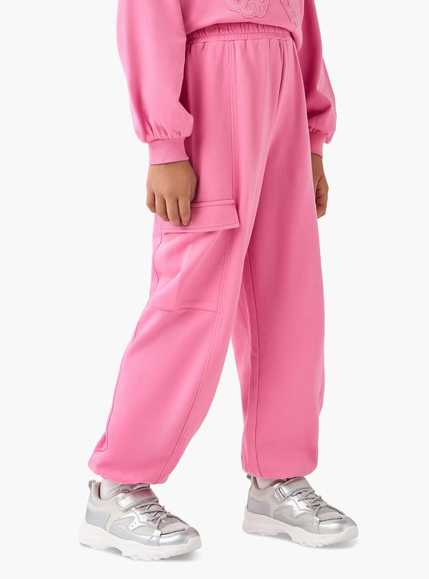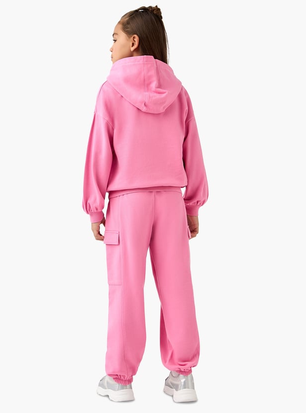 Elevate her casual collection with this charming joggers set, perfect for active days and relaxed moments. This two-piece set for girls includes a cosy butterfly hoodie, detailed with a shimmering applique, and coordinating joggers with practical side pockets. The soft fabric construction and relaxed fit ensure unrestricted movement and comfort, making this set a versatile favourite. An elasticated waistband and cuffs provide a secure fit, allowing her to play and explore with ease.