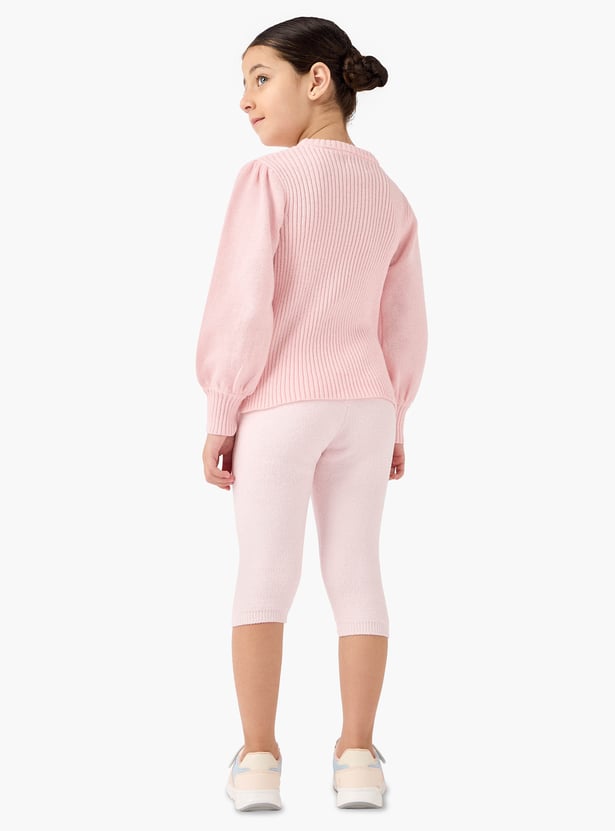 The charming pullover features a delightful butterfly applique and ribbed detailing, adding a touch of whimsy to her wardrobe. Soft and comfortable, this pullover allows for effortless movement and all-day comfort.