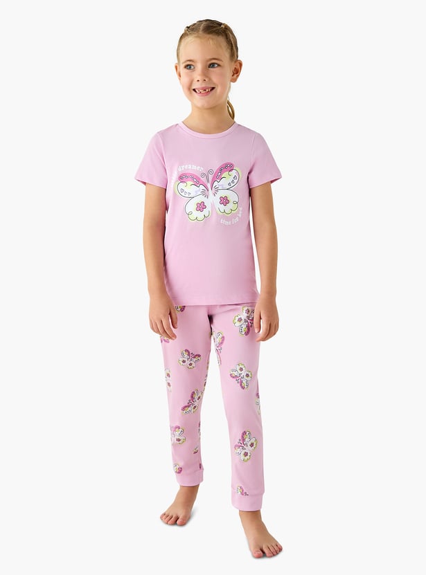 Juniors Butterfly Print T-shirt and Pyjama Set