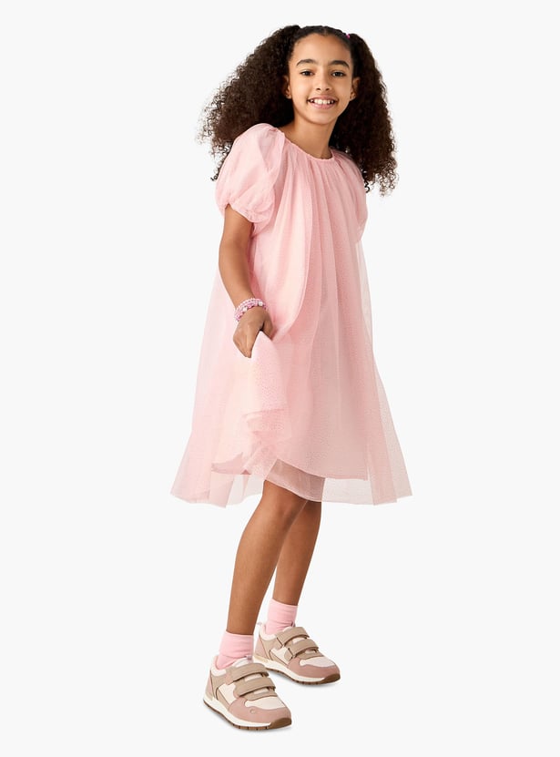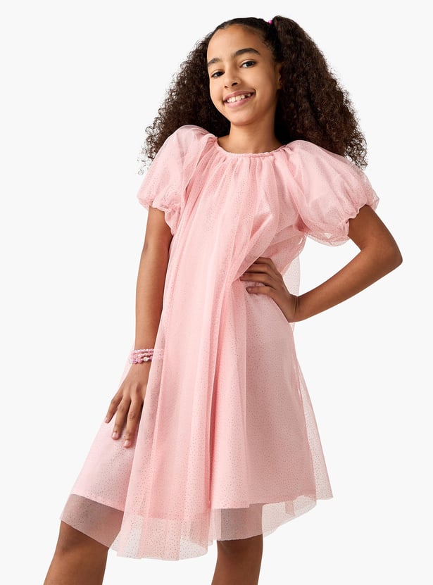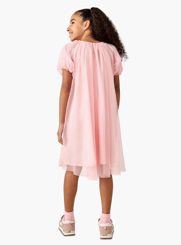 Juniors Embellished Round Neck Dress with Short Sleeves