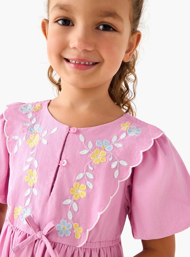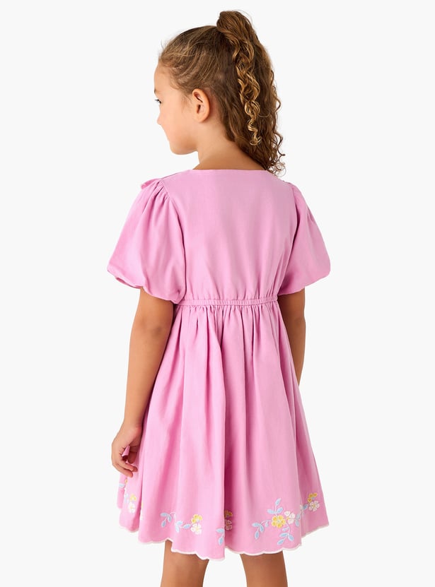 Juniors Floral Embroidered Dress with Button Placket