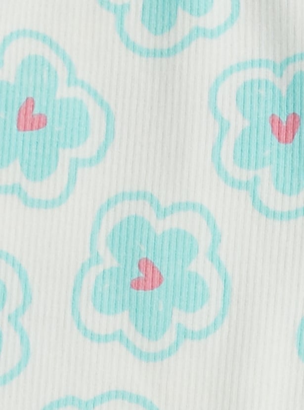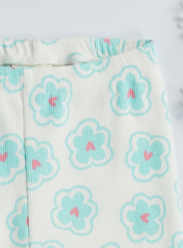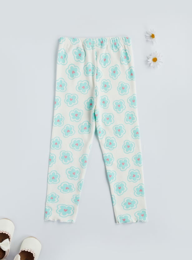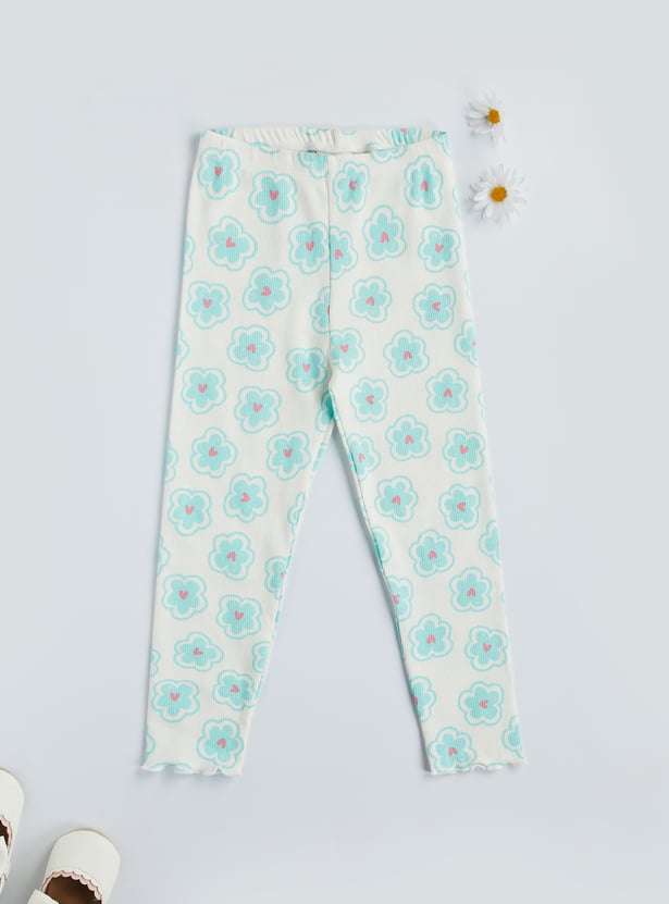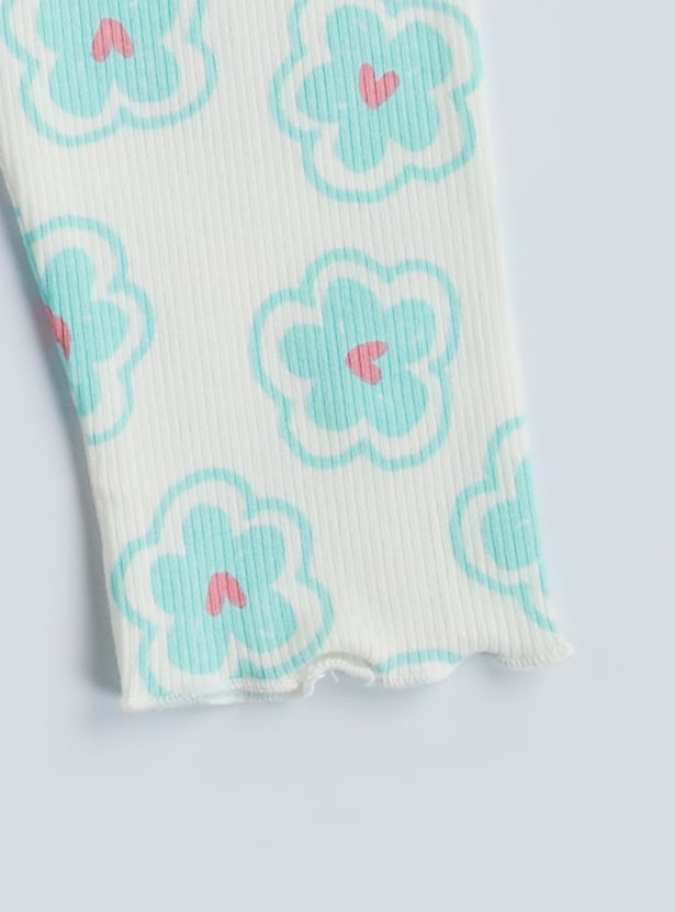Juniors Floral Print Ribbed Leggings with Elasticated Waistband