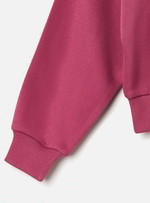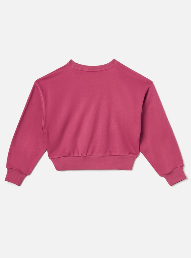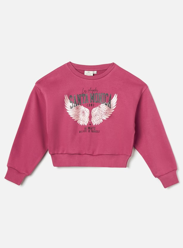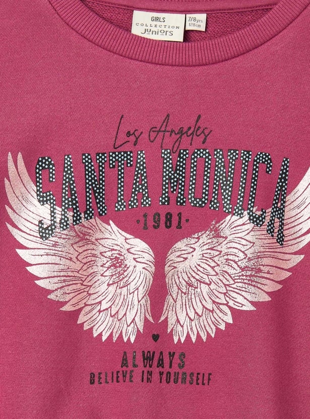 Juniors Graphic Print Pullover with Round Neck and Long Sleeves