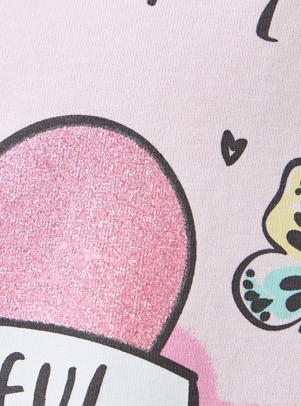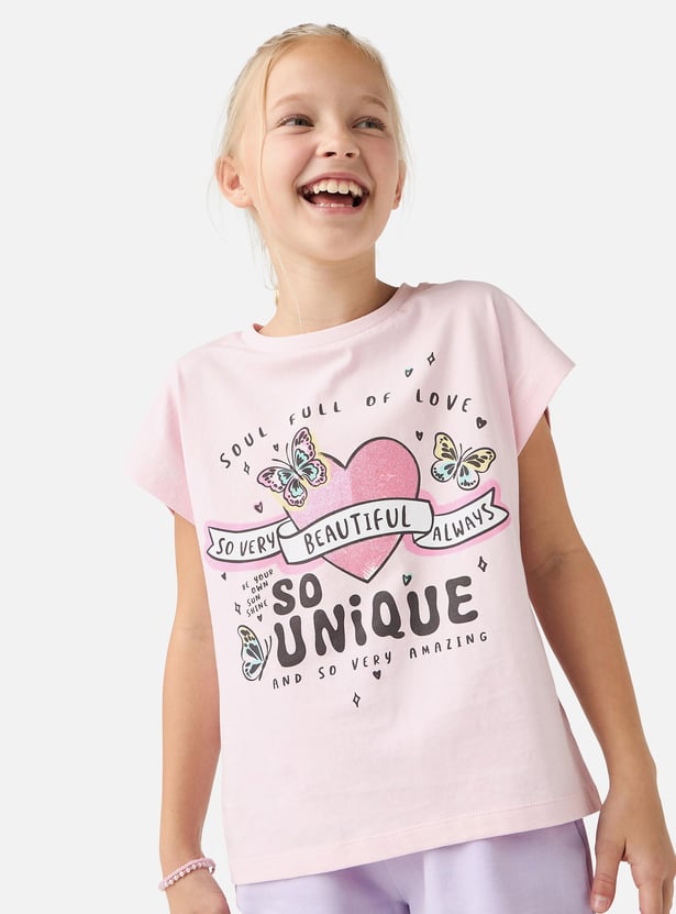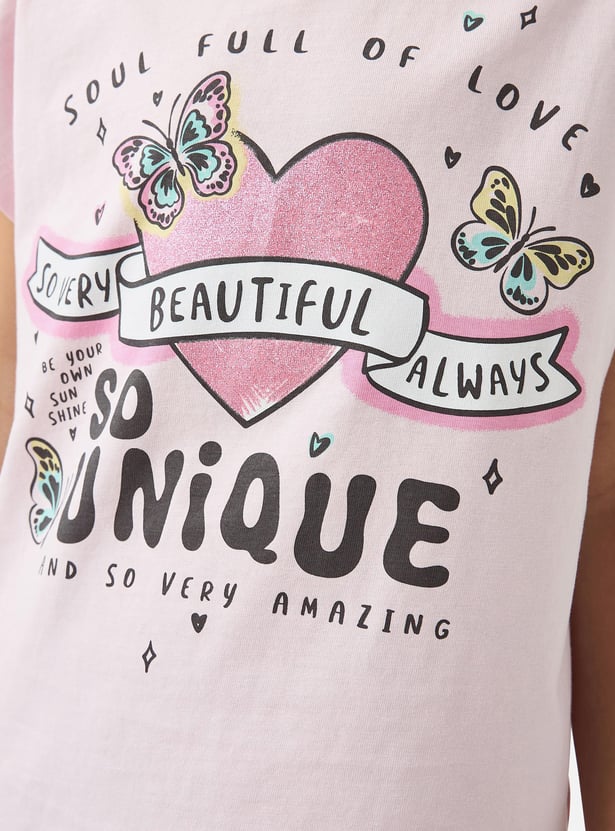 Juniors Graphic Print Round Neck T-shirt with Short Sleeves