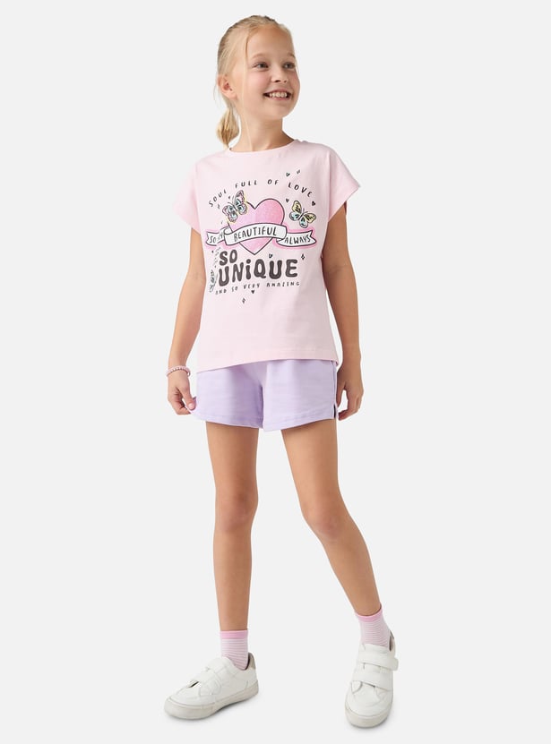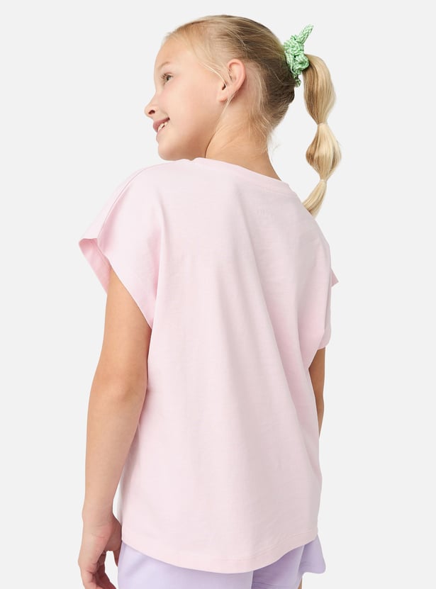 Add a splash of fun to your girl's wardrobe with this graphic print round neck t-shirt. Made from soft, breathable fabric, this short-sleeves t-shirt ensures all-day comfort. Perfect for casual outings and playtime, it combines vibrant graphic designs with practical wear.