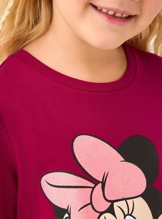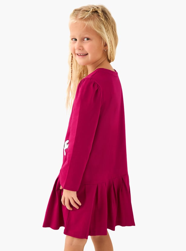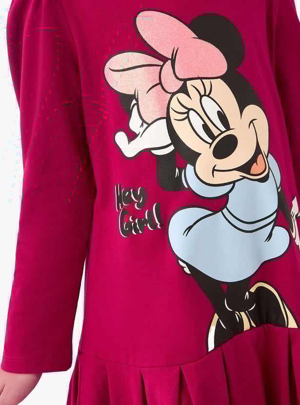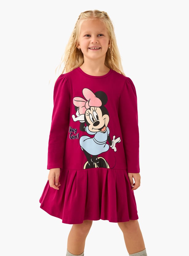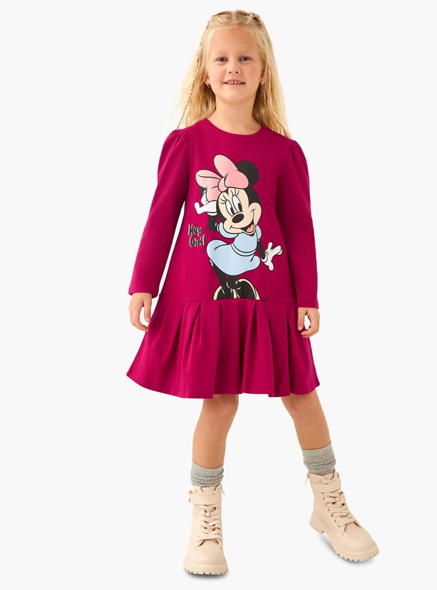 Juniors Minnie Mouse Print A-line Dress with Long Sleeve