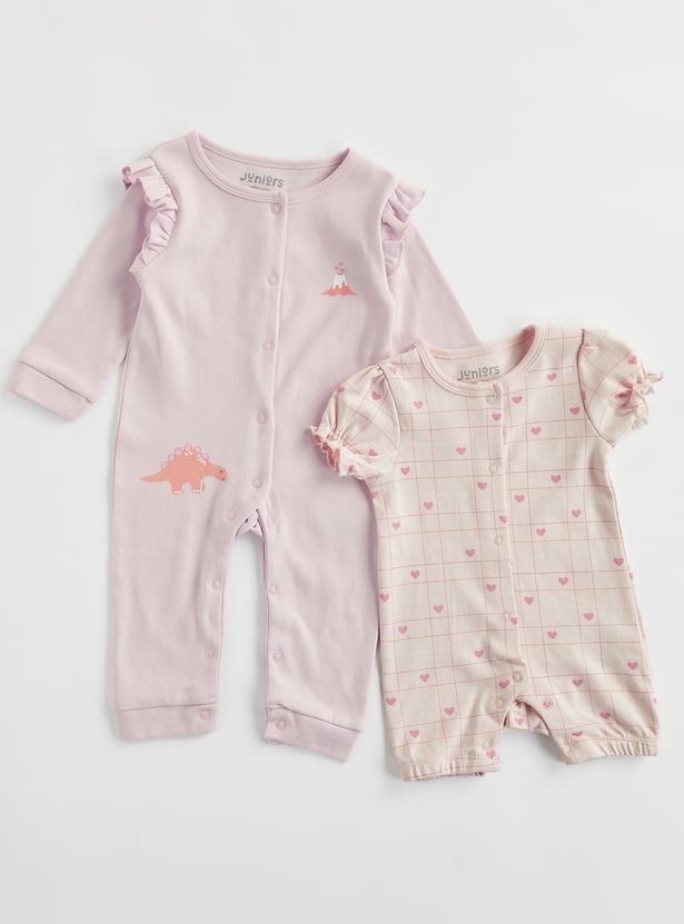 Juniors Printed Sleepsuit and Romper Set of 2